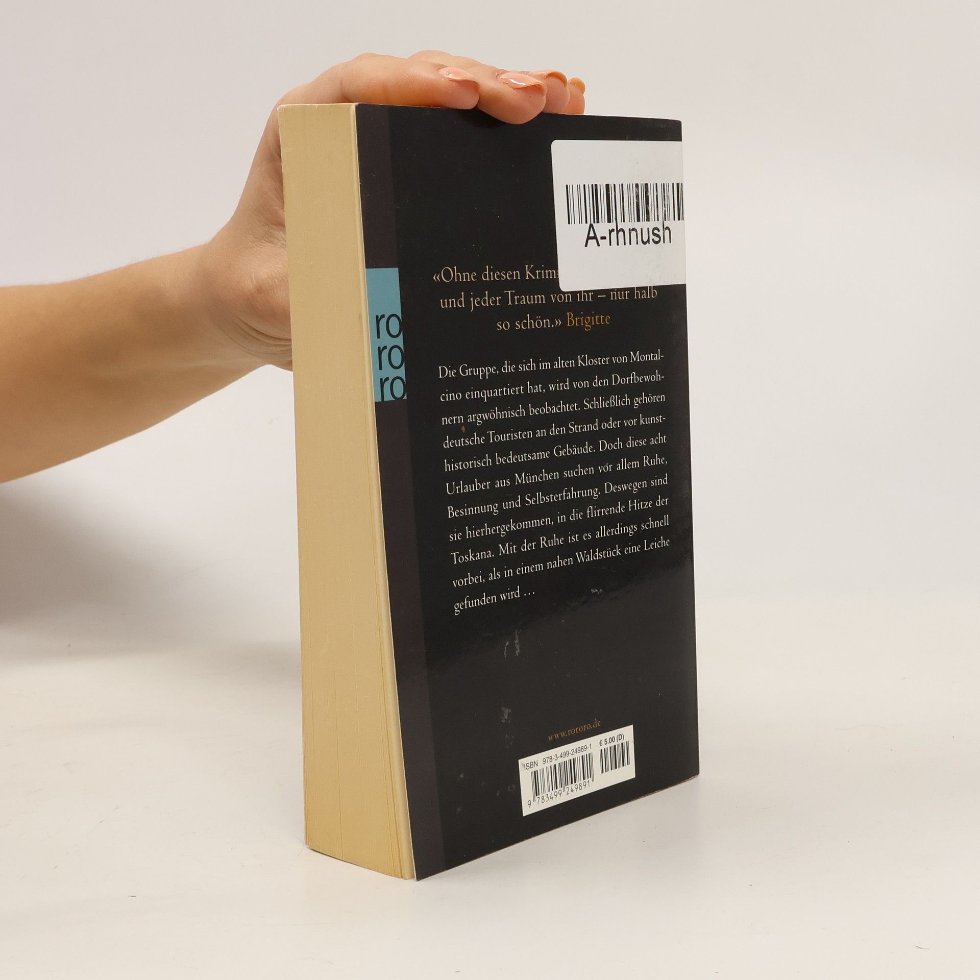 «Ohne diesen Krimi ist die Toskana – und jeder Traum von ihr – nur halb so schön.»(Brigitte) Die Gruppe, die sich im alten Kloster von Montalcino einquartiert hat, wird von den Dorfbewohnern argwöhnisch beobachtet. Schließlich gehören deutsche Touristen an den Strand oder vor kunsthistorisch bedeutsame Gebäude. Doch diese acht Urlauber aus München suchen vor allem Ruhe, Besinnung und Selbsterfahrung. Deswegen sind sie hierher gekommen, in die flirrende Hitze der Toskana. Mit der Ruhe ist es allerdings schnell vorbei, als in einem nahen Waldstück eine Leiche gefunden wird…