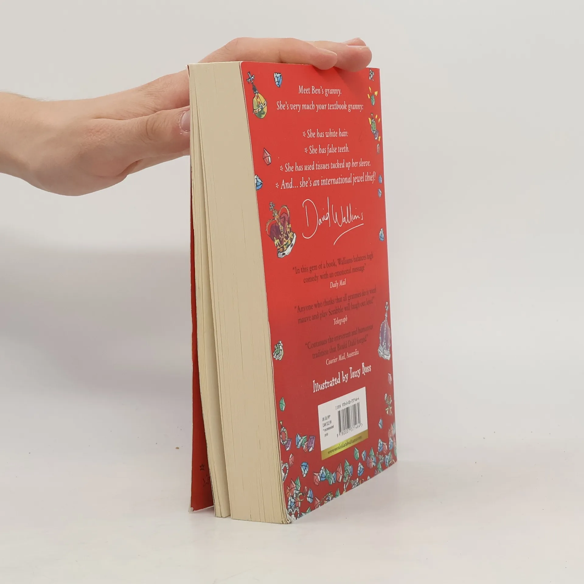 A story of prejudice and acceptance, funny lists and silly words, this new book has all the hallmarks of David's previous bestsellers.Our hero Ben is bored beyond belief after he is made to stay at his grandma's house. She's the boringest grandma ever: all she wants to do is to play Scrabble, and eat cabbage soup. But there are two things Ben doesn't know about his grandma.1) She was once an international jewel thief.2) All her life, she has been plotting to steal the crown jewels, and now she needs Ben's help...