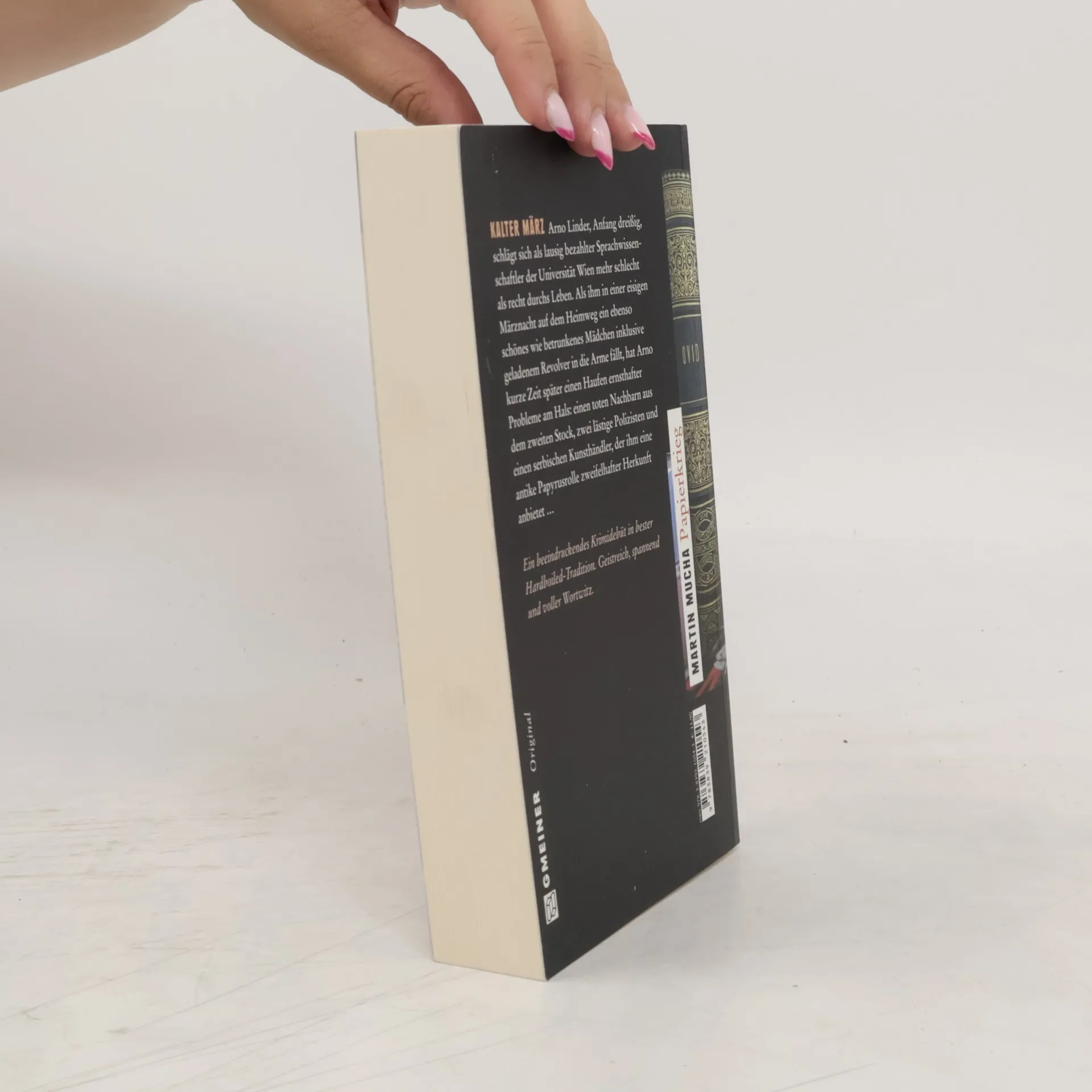 Arno Linder, Anfang dreißig, lebt im schönen Wien. Als Doktor der klassischen Philologie ist er aufgrund desaströser Universitätsreformen stark armutsgefährdet - nur mit mehr oder weniger legalen Nebenjobs kann er sich notdürftig über Wasser halten. In einer eisigen Märznacht stolpert Arno auf dem Heimweg über ein betrunkenes Mädchen. Als er beschließt, die Schöne nach Hause zu fahren, stellt er fest, dass das Töchterchen aus reichem Hause offenbar in einen Mordfall verwickelt ist. In der Hoffnung, für sein Schweigen gut bezahlt zu werden, beginnt sich Arno für die Hintergründe der Affäre zu interessieren und entwendet dem Ermordeten Handy und Notebook. Doch damit beginnen seinen Schwierigkeiten erst richtig: Mit der Mordwaffe in seinem Besitz wird er von der Polizei in die Mangel genommen. Seine Anstellung an der Uni droht verloren zu gehen. Und dann taucht auch noch ein serbischer Kunsthändler namens Mihailovic auf, der Arno eine antike Papyrusrolle zweifelhafter Herkunft anbietet …
