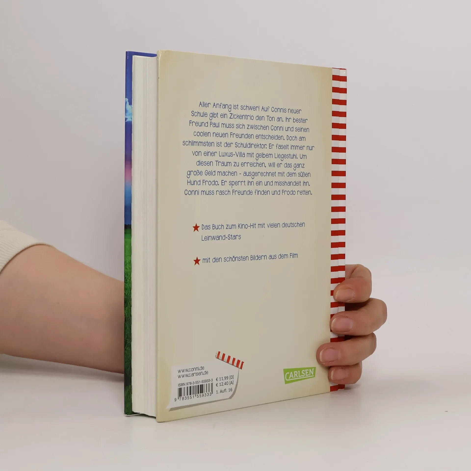 Aller Anfang ist schwer! Auf Connis neuer Schule gibt ein Zickentrio den Ton an. Ihr bester Freund Paul muss sich zwischen Conni und seinen coolen neuen Freunden entscheiden. Doch am schlimmsten ist der Schuldirektor. Er faselt immer nur von einer Luxus-Villa mit gelbem Liegestuhl. Um diesen Traum zu erreichen, will er das ganz große Geld machen - ausgerechnet mit dem süßen Hund Frodo. Der soll das Testimonial der Futter-Marke CHIEF werden. Conni muss rasch Freunde finden und Frodo retten.