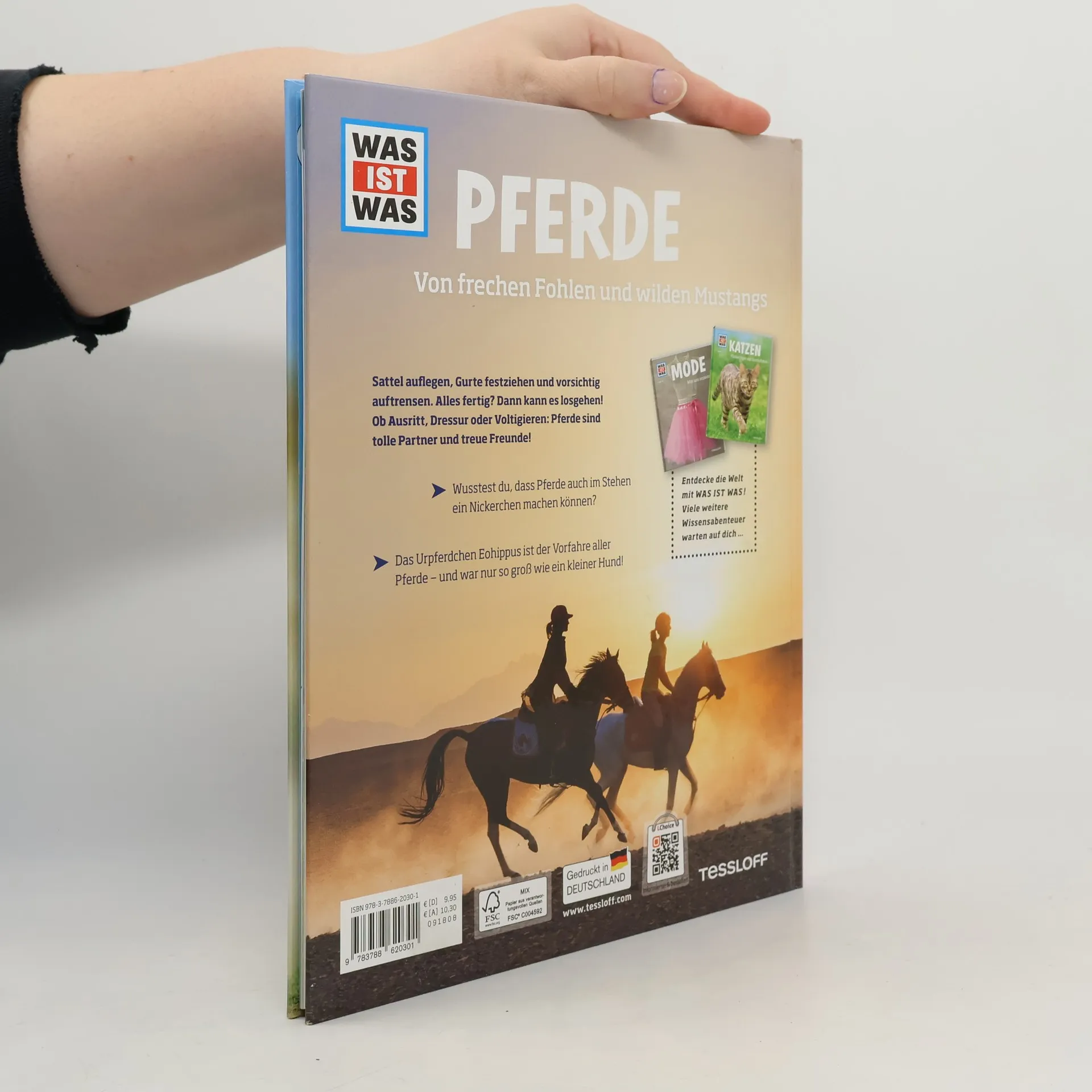 Pferde und Menschen sind ein tolles Team und gute Freunde - ob beim Springreiten, Geländeritt oder Voltigieren. Dabei hat alles klein angefangen: Das Urpferdchen Eohippus war nicht größer als ein Hund! Heute können Rassen wie das Shire Horse aus England über zwei Meter groß sein. Apfelschimmel, gefleckte Schecken, dunkle Rappen - die Welt der Pferde ist unglaublich bunt, spannend und gerade für junge Leser faszinierend. Und so erklärt dieser WAS IST WAS-Band unter anderem, wie artgerechte Pferdehaltung aussieht und wie Pferde richtig gepflegt werden.
