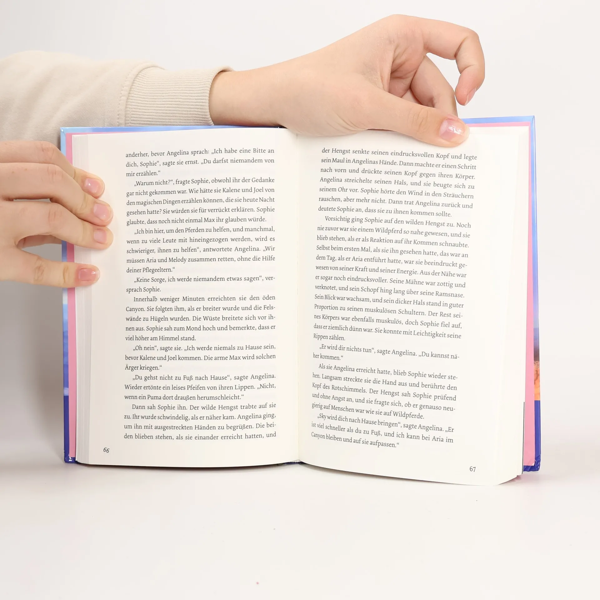 Wo immer auf der Welt ein Pferd in Not gerät, kann Angelina seinen Hilferuf hören. Sofort tut sie alles, um dem Tier zu helfen, denn sie ist ein Engel für Pferde! Sophie hat die wertvolle Stute Aria in einem Canyon versteckt, damit ihre Pflegeeltern nicht entdecken, dass sie ein Fohlen erwartet. Ihr Plan scheint zu funktionieren, bis Sophie angefahren wird und sich nicht mehr um die Stute kümmern kann. Dann nimmt auch noch ein Puma die Witterung von Aria auf. Kann Angelina dem hilflosen Pferd in dieser gefährlichen Situation helfen?