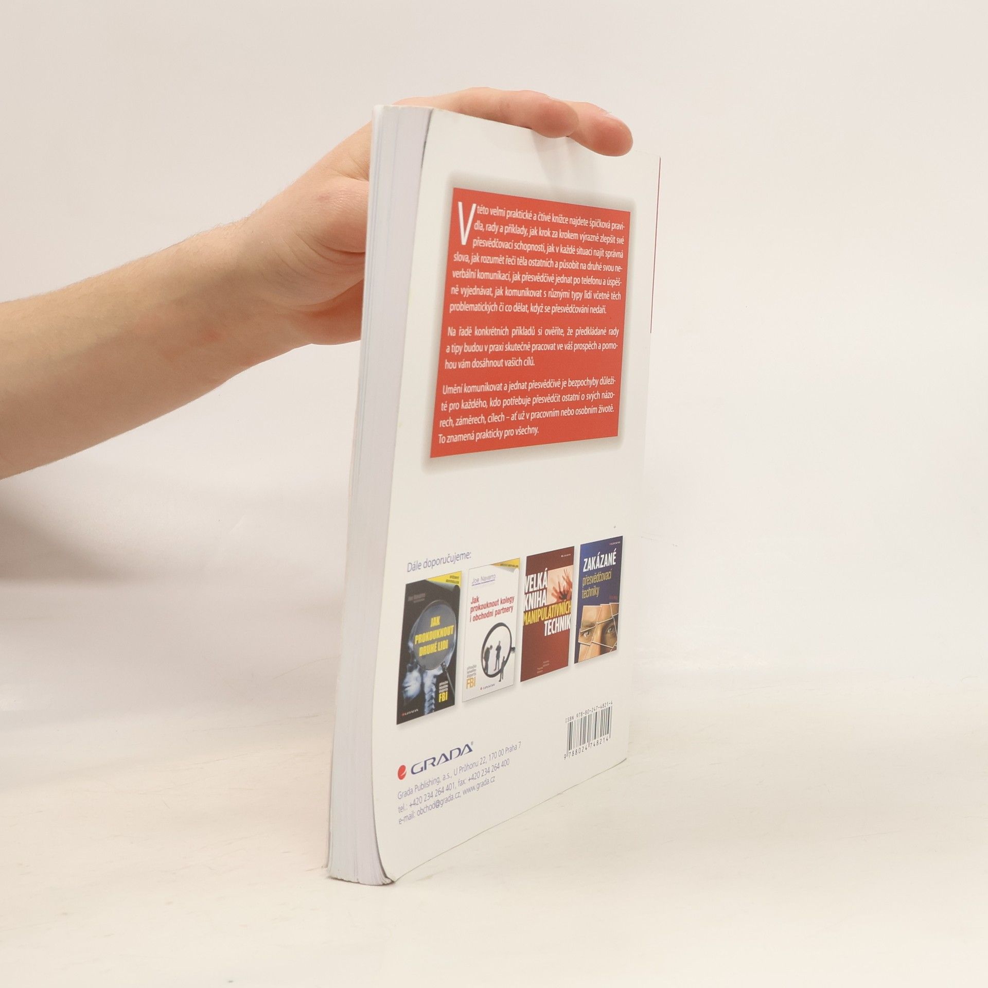 V této velmi praktické a čtivé knížce najdete špičková pravidla, rady a příklady, jak krok za krokem výrazně zlepšit své přesvědčovací schopnosti, jak v každé situaci najít správná slova, jak rozumět řeči těla ostatních a působit na druhé svou neverbální komunikací, jak přesvědčivě jednat po telefonu a úspěšně vyjednávat, jak komunikovat s různými typy lidí či co dělat, když se přesvědčování nedaří. Na řadě konkrétních příkladů si ověříte, že předkládané rady a tipy budou v praxi skutečně pracovat ve váš prospěch a pomohou vám dosáhnout vašich cílů. Umění komunikovat a jednat přesvědčivě je bezpochyby důležité pro každého, kdo potřebuje přesvědčit ostatní o svých názorech, záměrech, cílech - ať už v pracovním nebo osobním životě. To znamená prakticky pro všechny.