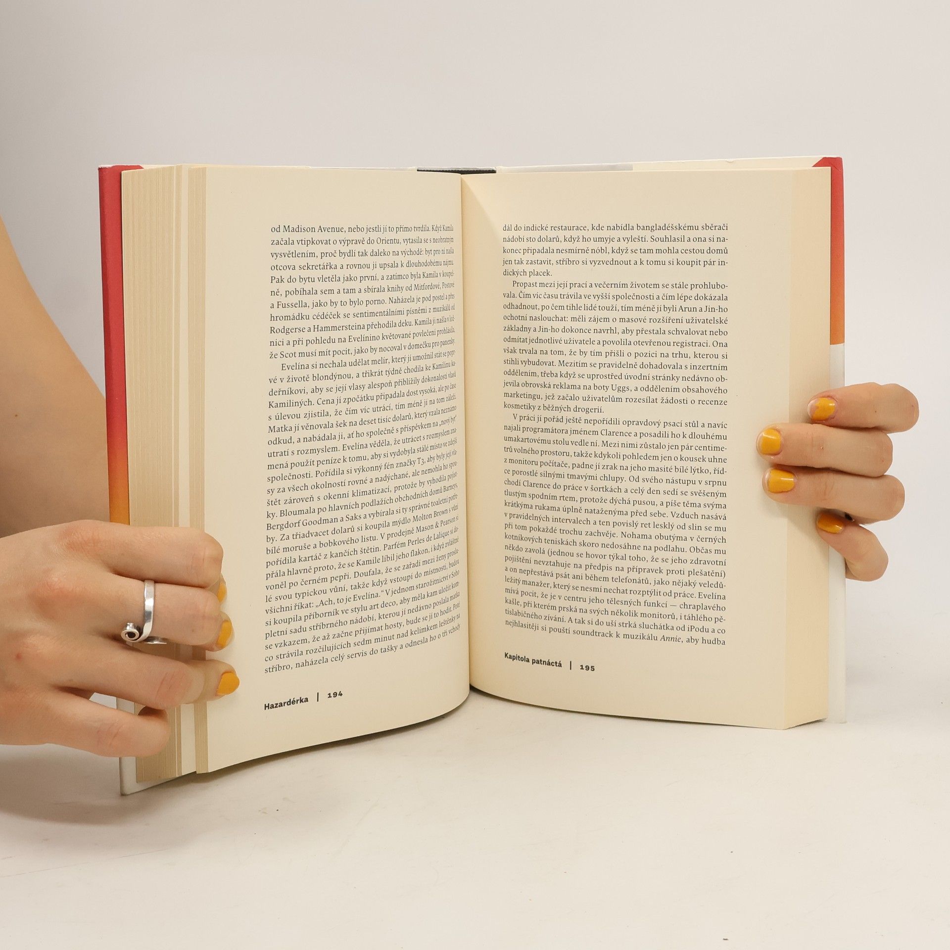 Román Stephanie Cliffordové, novinářky New York Times, nám s fascinujícími detaily umožňuje nahlédnout do „zlaté klece” mladých newyorských finančníků a bankovních makléřů, kteří se díky kapitálu svých rodičů, elitním školám a konexím vezou na vlně spekulativních báječných zisků – v době, kdy jen škarohlídi rozpoznávají příznaky krize, jež zanedlouho zasáhne celou Ameriku. Hrdinka Evelína pochází ze skromnějších poměrů, ale díky své ambiciózní matce absolvovala elitní školu a nyní využije všech prostředků, aby pronikla do oslnivého života, který dosud sledovala jenom zpovzdálí. Řečeno s Hemingwayem je oslněna romantickou bázní ze superbohatých, a tak napodobuje snobská tekutá pravidla, slangové výrazy a manýry „aristokratických starých peněz”. Jenomže kam až dosahuje magická hypnotizující moc muzikálových příběhů? Evelína se musí v mnohém zapřít – co se jí ale ukáže, jestli projde zrcadlem a ohlédne se?