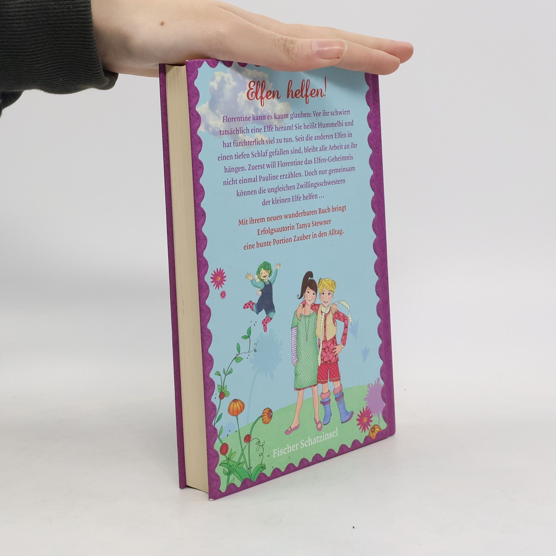 Elfen helfen! Noch vor Sonnenaufgang huscht Florentine zur Waldlichtung. Ob das Ritual aus dem uralten Elfenbuch tatsächlich funktioniert? Als sie den Spruch aufgesagt hat und erwartungsvoll die Augen öffnet, kann sie es kaum glauben: Vor ihr schwirrt tatsächlich eine Elfe herum! Sie heißt Hummelbi und hat fürchterlich viel zu tun. Seit die anderen Elfen in einen tiefen Schlaf gefallen sind, bleibt alle Arbeit an ihr hängen. Zuerst will Florentine das Elfengeheimnis nicht einmal Pauline erzählen, weil sie in letzter Zeit ständig Ärger mit ihr hat. Doch nur gemeinsam können die ungleichen Zwillingsschwestern der kleinen Elfe helfen … Mit ihrem neuen wunderbaren Buch bringt Erfolgsautorin Tanya Stewner eine bunte Portion Zauber in den Alltag.