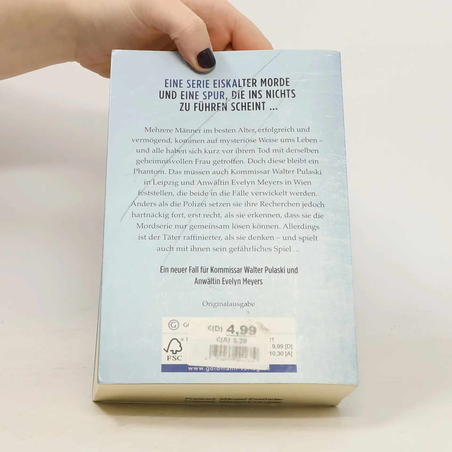 Mehrere Männer im besten Alter, erfolgreich und vermögend, werden grausam ermordet – und obwohl sie in verschiedenen Städten lebten, haben sich alle kurz vor ihrem Tod mit einer geheimnisvollen dunkelhaarigen Frau getroffen. Doch diese bleibt ein Phantom. Das müssen auch Kommissar Walter Pulaski in Leipzig und Anwältin Evelyn Meyers in Wien feststellen, die beide in die Fälle verwickelt werden. Anders als die Polizei lassen sie sich jedoch nicht entmutigen, erst recht nicht, als sie erkennen, dass sie die Mordserie nur gemeinsam lösen können. Allerdings ist der Täter raffinierter, als sie denken – und spielt auch mit ihnen sein gefährliches Spiel ...