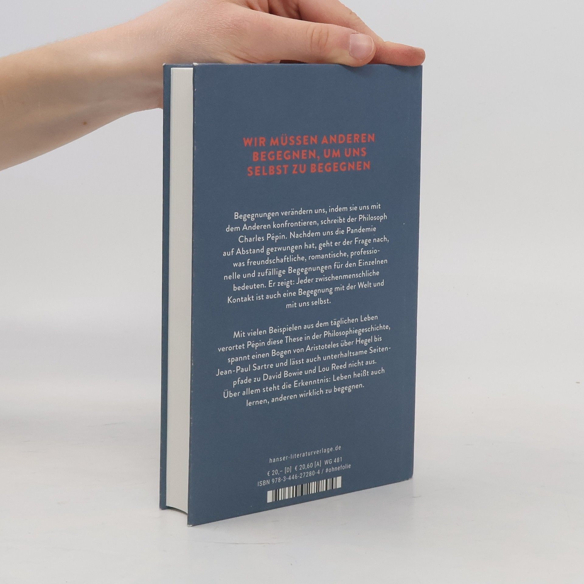Gesundheit, Kreativität, persönliches Glück – Charles Pépin zeigt: Wir müssen anderen begegnen, um uns selbst zu begegnen. Begegnungen verändern uns, indem sie uns mit dem Anderen konfrontieren, schreibt Charles Pépin. Nachdem uns die Pandemie auf Abstand gezwungen hat, geht der Philosoph der Frage nach, was freundschaftliche, romantische, professionelle und zufällige Begegnungen für den Einzelnen bedeuten. Er zeigt: Jeder zwischenmenschliche Kontakt ist auch eine Begegnung mit der Welt und mit uns selbst. Mit vielen Beispielen aus dem täglichen Leben verortet Pépin diese These in der Philosophiegeschichte, spannt einen Bogen von Aristoteles über Hegel bis Jean-Paul Sartre und lässt auch unterhaltsame Seitenpfade zu David Bowie und Lou Reed nicht aus. Über allem steht die Erkenntnis: Leben heißt auch lernen, anderen wirklich zu begegnen.
