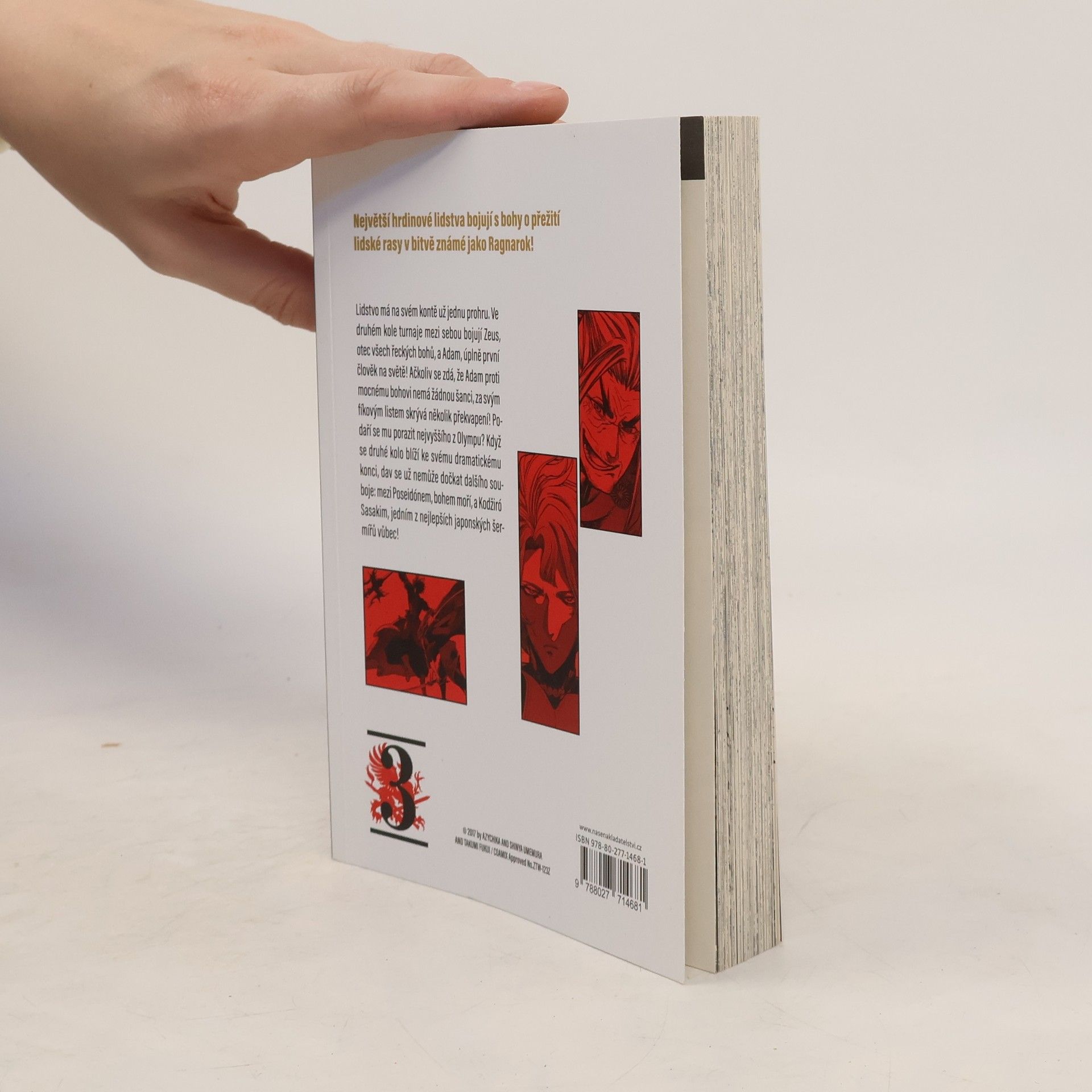 Největší hrdinové lidstva bojují s bohy o přežití lidské rasy v bitvě známé jako Ragnarok!Lidstvo má na svém kontě už jednu prohru. Ve druhém kole turnaje mezi sebou bojují Zeus, otec všech řeckých bohů, a Adam, úplně první člověk na světě! Ačkoliv se zdá, že Adam proti mocnému bohovi nemá žádnou šanci, za svým fíkovým listem skrývá několik překvapení! Podaří se mu porazit nejvyššího z Olympu? Když se druhé kolo blíží ke svému dramatickému konci, dav se už nemůže dočkat dalšího souboje: mezi Poseidónem, bohem moří, a Kodžiró Sasakim, jedním z nejlepších japonských šermířů vůbec!