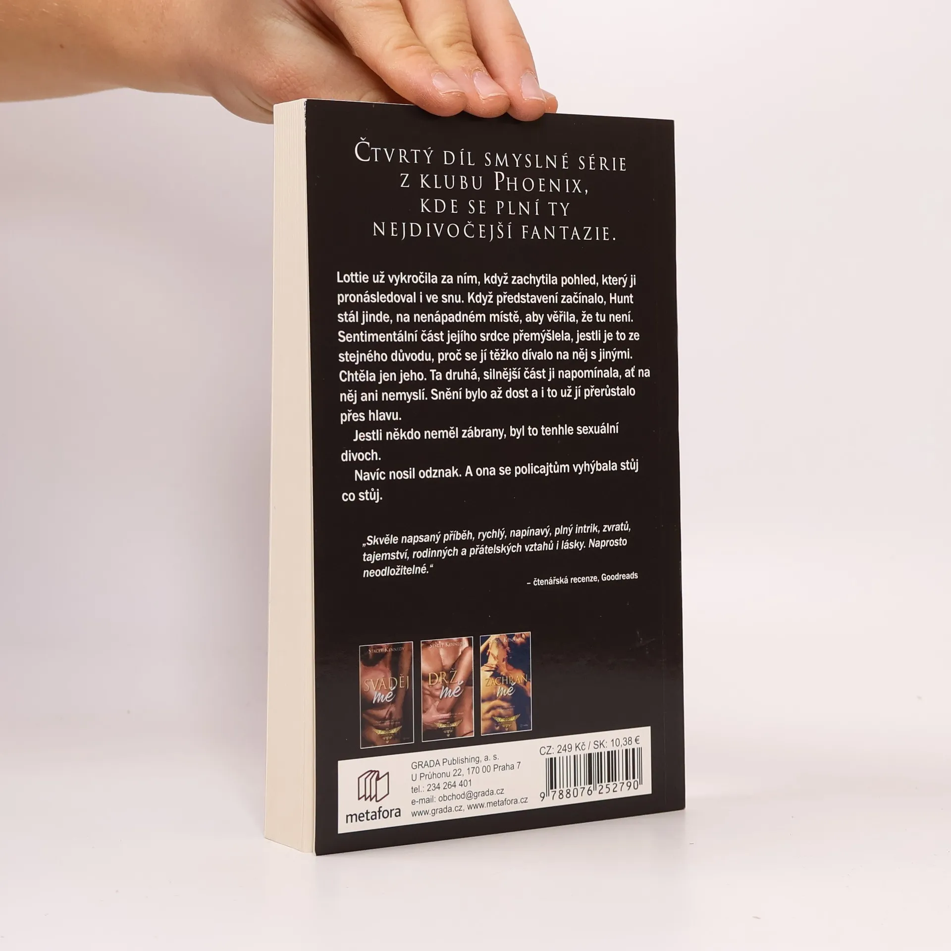 Hunt si noci ve Phoenixu vždycky užíval, najednou mu to však nestačí. Potřebuje víc. Potřebuje vztah. A nechce nikoho jiného než Lottie. Touží po ní už roky. V čem je problém? Žena jeho snů si od něj udržuje odstup. Odmítá si ho pustit k tělu a snaží se ignorovat jiskru, která mezi nimi přeskakuje. Hunt ví, že ji přitahuje, že je jen vyděšená. Důvody však zůstávají zahalené tajemstvím.Když se na scéně objeví lidé z Lottiiny minulosti a baží po odplatě, její tajemství vycházejí na světlo – spolu s výbušnou touhou, s níž oba dosud bojovali. Nezvladatelný chtíč vede k lásce, když ale Lottie začnou ohrožovat její mafiánští bratři, hranice mezi tím, co je správné a co ne, se pomalu stírá.Hunt je rozpolcený mezi věrností zákonu a potřebou chránit Lottie. Má jen jedinou šanci jí ukázat, že mu stojí za to o ni bojovat… a že její láska mu stojí za všechna rizika.
