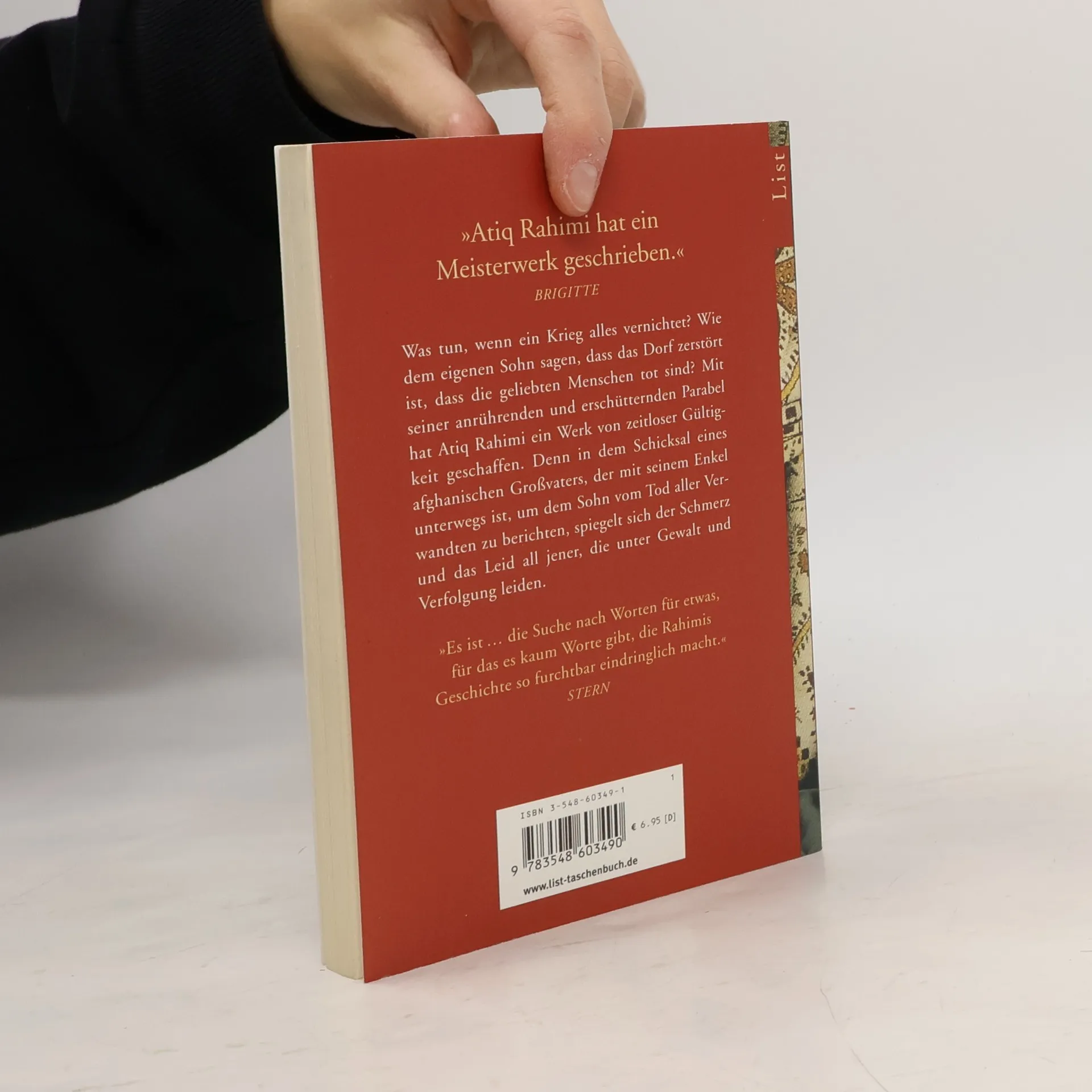 Mit seiner anrührenden und erschütternden Parabel hat Atiq Rahimi ein Werk von zeitloser Gültigkeit geschaffen. Denn in dem Schicksal eines afghanischen Großvaters, der mit seinem Enkel unterwegs ist, um dem Sohn vom Tod aller Verwandten zu berichten, spiegeln sich der Schmerz und das Leid all jener, die unter Gewalt und Verfolgung leiden. Eine große literarische Entdeckung.