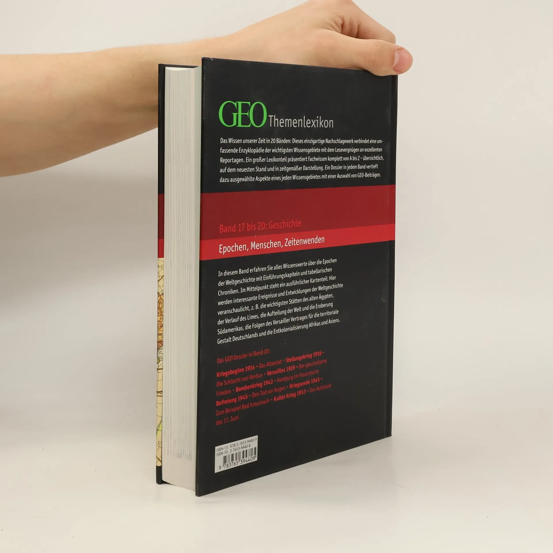 Das Wissen unserer Zeit in 20 Themenbänden: Dieses Nachschlagewerk ist eine Kooperation des Brockhaus-Verlages mit dem Wissenschaftsmagazin GEO und verbindet eine umfassende Enzyklopädie der wichtigsten Wissensgebiete mit dem Lesevergnügen an exzellenten Reportagen im GEO Dossier, das den alphabetischen Stichwortbestand eines jeden Bandes ergänzt. Die Bände 17 bis 20 beschäftigen sich mit dem Themenbereich "Geschichte".
