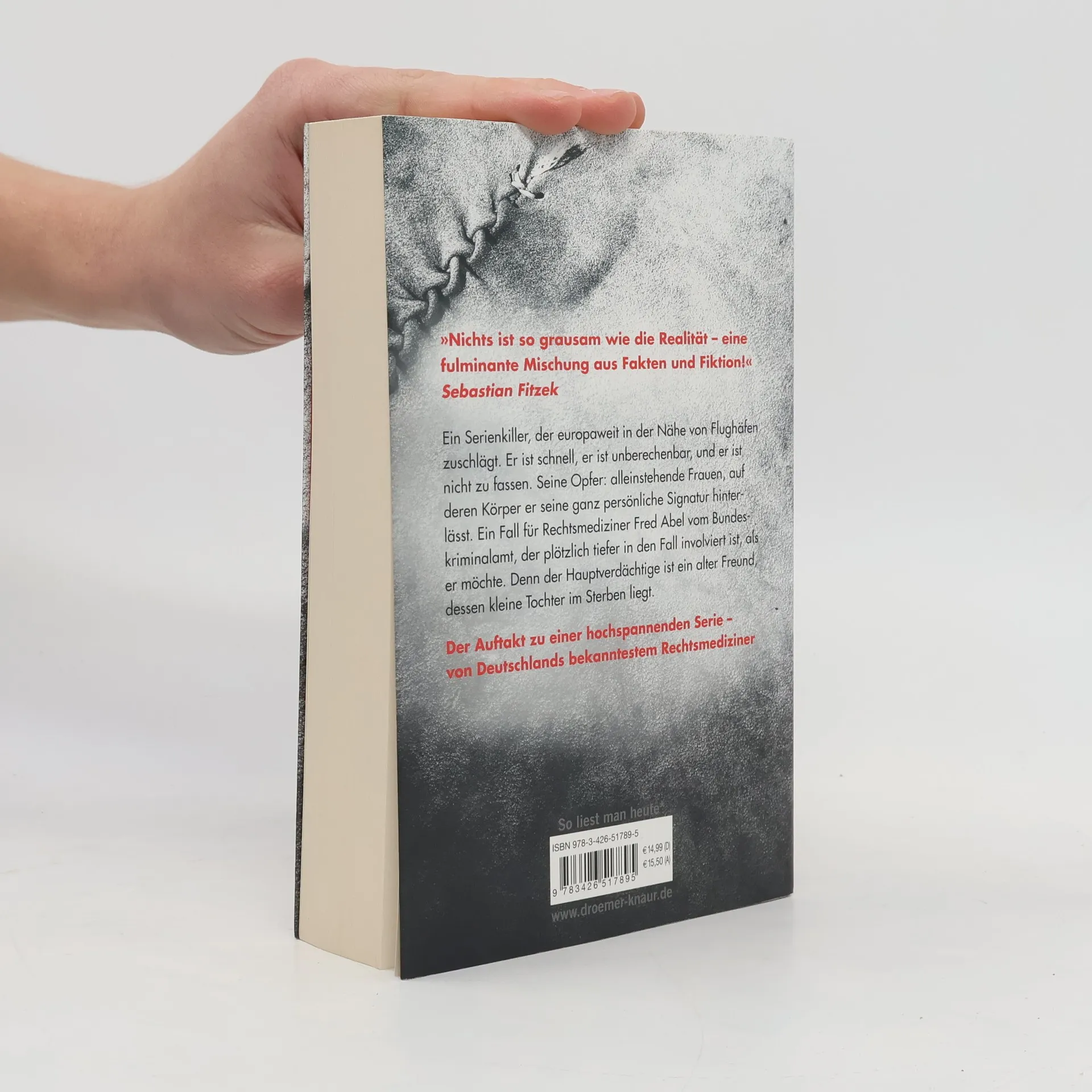 Der erste Thriller von Michael Tsokos basiert – wie könnte es anders sein – auf einem authentischen Fall und echten Ermittlungen. Sein Protagonist, Rechtsmediziner Dr. Fred Abel vom BKA, bekommt es mit einem europaweit agierenden Serienmörder zu tun: Im Umkreis europäischer Flughäfen geschehen Schlag auf Schlag Morde an Frauen, die der Täter mit einer mysteriösen Parole beschriftet. Durch eine spezielle DNA-Analyse gerät der Ex-Soldat Lars Moewig in Verdacht – ausgerechnet ein alter Kumpel des Rechtsmediziners aus gemeinsamen Bundeswehrzeiten, dem Abel so brutale Verbrechen niemals zugetraut hätte. Doch Moewig fehlen die Alibis, und er wird in U-Haft genommen. Während Moewigs kleine Tochter an Leukämie stirbt, versucht Abel fieberhaft, den wahren Täter zu entlarven. Eine atemlose Verfolgungsjagd über den europäischen Kontinent gefährdet nicht nur Abels Leben. Und die Zweifel an der Unschuld seines alten Freundes erdrücken ihn fast. „Nichts ist so grausam wie die Realität. „Zerschunden“ ist eine fulminante Mischung aus Fakten und Fiktion.“ Sebastian Fitzek
