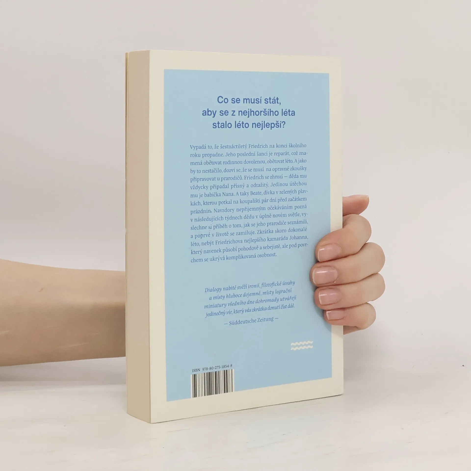 Co se musí stát, aby se z nejhoršího léta stalo léto nejlepší? Vypadá to, že šestnáctiletý Friedrich na konci školního roku propadne. Jeho poslední šancí je reparát, což znamená obětovat rodinnou dovolenou, obětovat léto. A jako by to nestačilo, dozví se, že se musí na opravné zkoušky připravovat u prarodičů. Friedrich se zhrozí -- děda mu vždycky připadal přísný a odtažitý. Jedinou útěchou mu je babička Nana. A taky Beate, dívka v zelených plavkách, kterou potkal na koupališti pár dní před začátkem prázdnin. Navzdory nepříjemným očekáváním pozná v následujících týdnech dědu v úplně novém světle, vyslechne si příběh o tom, jak se jeho prarodiče seznámili, a poprvé v životě se zamiluje. Zkrátka skoro dokonalé léto, nebýt Friedrichova nejlepšího kamaráda Johanna, který navenek působí pohodově a sebejistě, ale pod povrchem se ukrývá komplikovaná osobnost. Nakladatelská anotace.