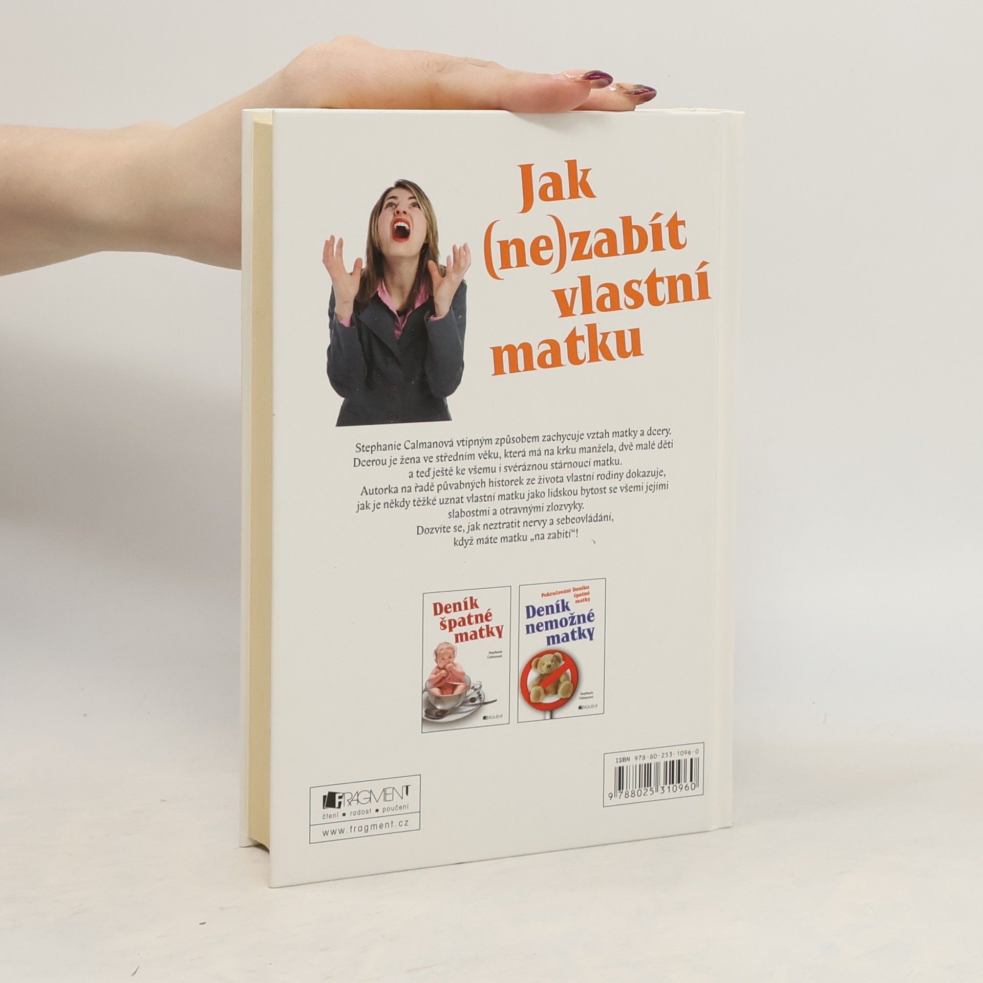 Stephanie Calmanová vtipným způsobem zachycuje vztah matky a dcery. Dcerou je žena ve středním věku, která má na krku manžela, dvě malé děti a teď ještě ke všemu i svéráznou stárnoucí matku. Autorka na řadě půvabných historek ze života vlastní rodiny dokazuje, jak je někdy těžké uznat vlastní matku jako lidskou bytost se všemi jejími slabostmi a otravnými zlozvyky. Dozvíte se, jak neztratit nervy a sebeovládání, když máte matku "na zabití"!
