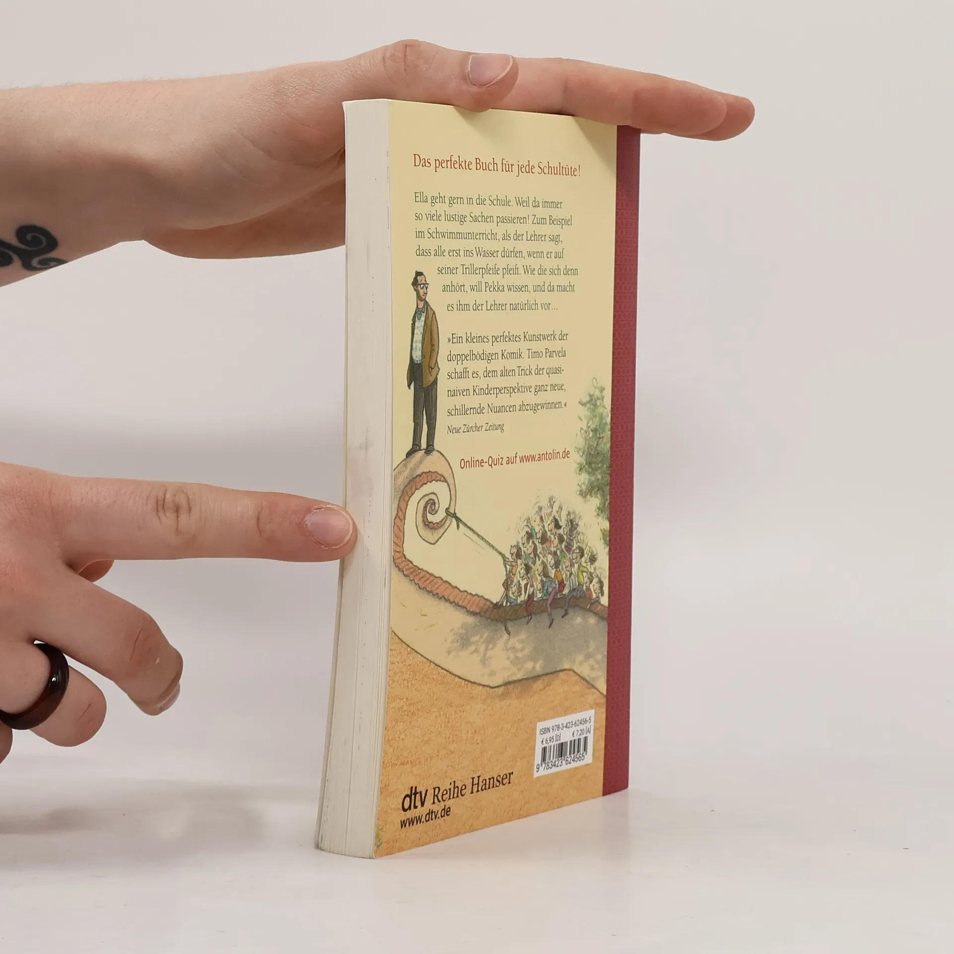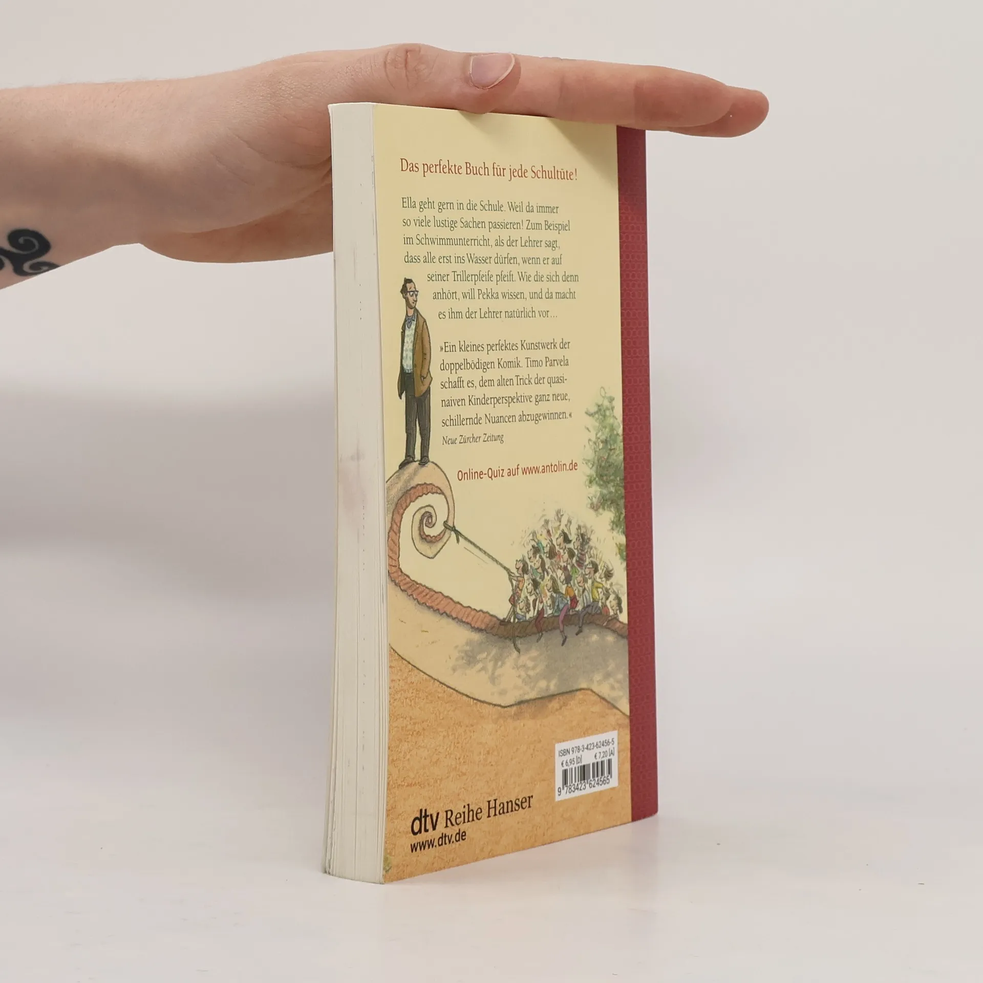 Zum Vorlesen und ersten Selberlesen Ella ist in der ersten Klasse und sie geht sehr gern zur Schule. Weil nirgendwo sonst so viele lustige Sachen passieren. Lustig ist es zum Beispiel im Schwimmunterricht, als der Lehrer sagt, sie dürfen alle erst ins Wasser springen, wenn er auf seiner Trillerpfeife pfeift. Wie die sich denn anhört, will Pekka wissen, und da macht es der Lehrer natürlich vor. Timo, Pekka, Tiina und Heidi können leider noch nicht schwimmen. Als der Lehrer sie aus dem Wasser gefischt hat, kann er ihnen nicht mal böse sein. Sie haben schließlich nur gemacht, was er gesagt hat. Zu diesem Buch finden Sie Quizfragen auf antolin. de