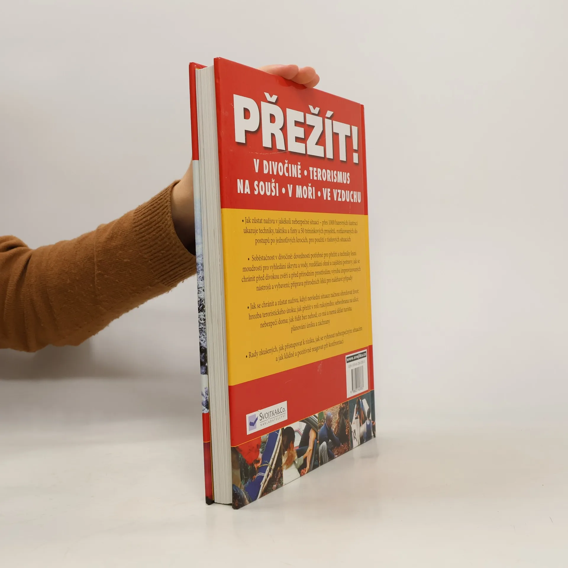 V divočině, na souši, na moři, ve vzduchu, mezi teroristy - jak zůstat naživu v jakékoli nebezpecné situaci. V této knize najdete přes 1000 barevných ilustrací, které ukazují techniky, taktiku a finty a 50 tréninkových projektů, rozfázovaných do postupů po jednotlivých krocích, pro použití v tísňových situacích. Naučí vás soběstačnosti v divočině: dovednosti potřebné pro přežití i techniky základní lesní moudrosti při vyhledání úkrytu či vody, rozdělání ohně a zajištění potravy, naučí jak se chránit před divokou zvěří i před prřírodními živly, jak vyrobit improvizované nástroje a vybavení, jak připravit přírodní léky pro naléhavé případy. Seznámí vás prostě s dovednostmi jak se chránit a zůstat naživu, když se z jakéhokoli důvodu ocitneme v ohrožení života. Ať při hrozbě teroristického útoku, nebo v roli rukojmího, při sebeobraně na ulici, či při nebezpečí doma. Kniha obsahuje i rady odborníků jak vyhodnocovat riziko, jak se nebezpečným situacím vyhnout i jak adekvátně reagovat při konfrontaci. Prostě jak přežít!
