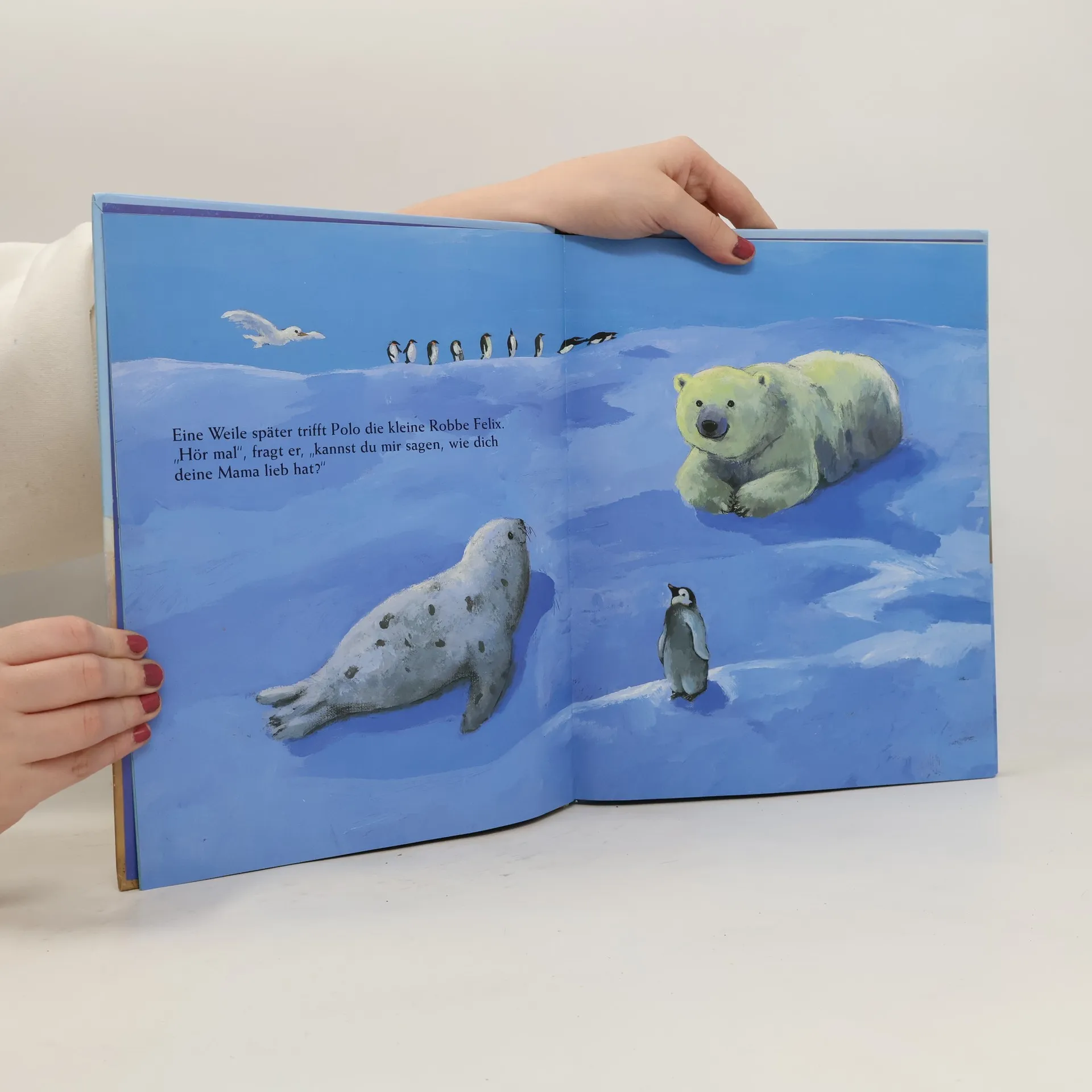 Der kleine Eisbär Polo will wissen, wie ihn seine Mama lieb hat; mit den Armen, der Nase, den Augen ... oder?