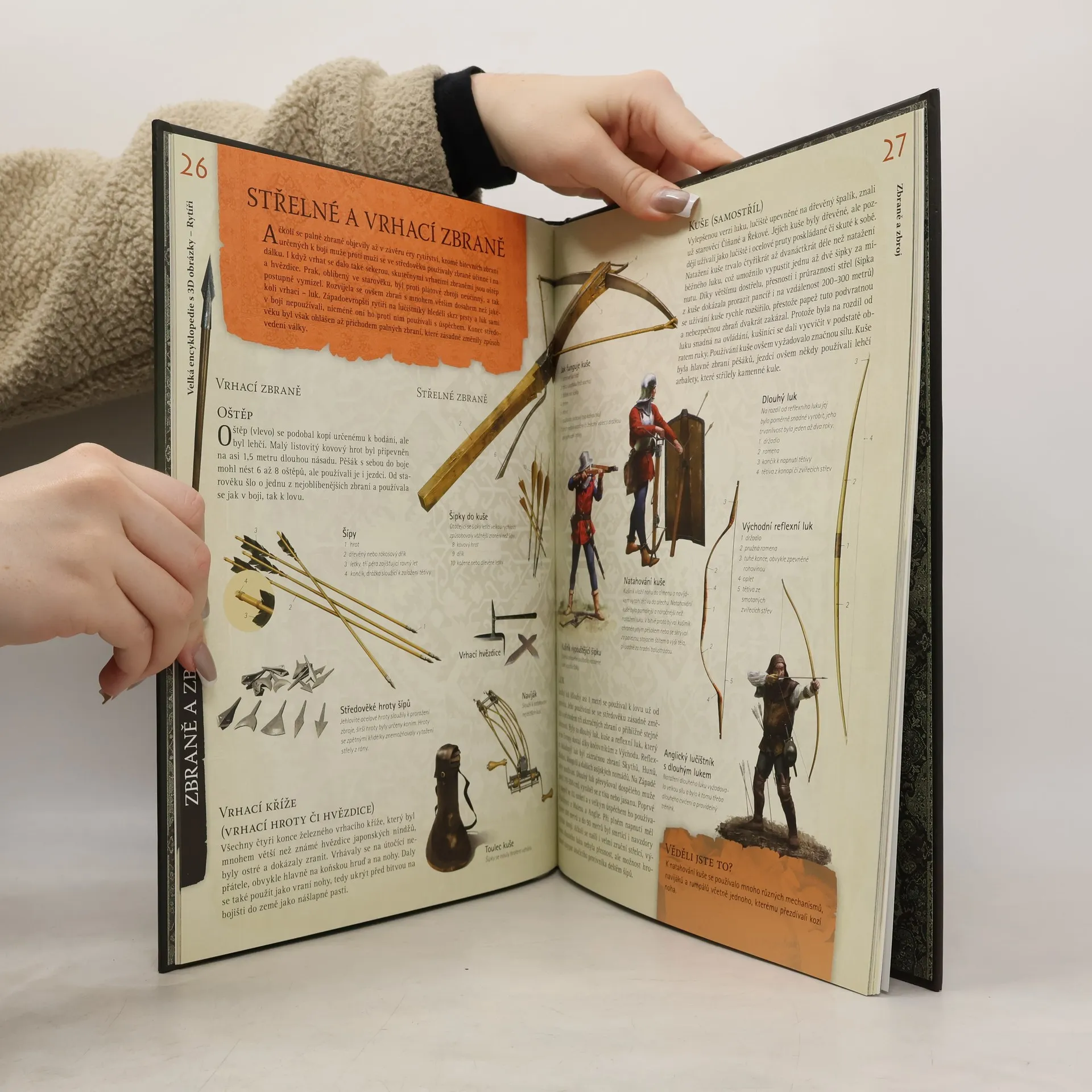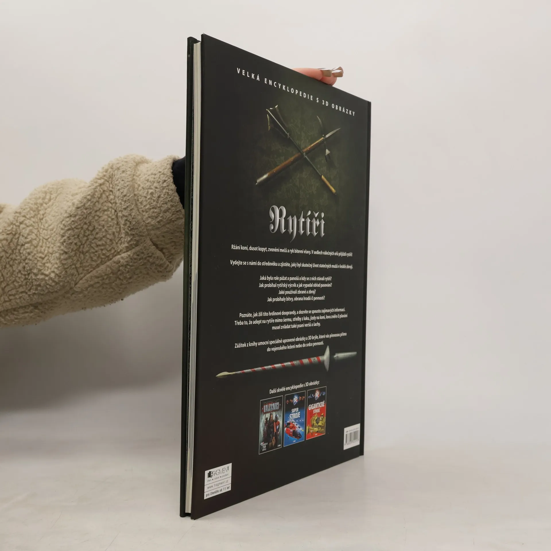 Ržání koní, dusot kopyt, zvonění mečů a ryk bitevní vřavy. V sedlech válečných ořů přijíždí rytíři! Vydejte se s námi do středověku a zjistěte, jaký byl skutečný život statečných mužů v lesklé zbroji. Jaká byla role pážat a panošů a kdy se z nich stávali rytíři? Jak probíhal rytířský výcvik a jak vypadal obřad pasování? Jaké používali zbraně a zbroj? Jak probíhaly bitvy, obrana hradů či pevností? Poznáte, jak žili tito hrdinové doopravdy, a dozvíte se spoustu zajímavých informací. Třeba to, že adept na rytíře mimo šermu, střelby z luku, jízdy na koni, lovu zvěře či plavání musel zvládat také psaní veršů a šachy. Zážitek z knihy umocní speciálně upravené obrázky a 3D brýle, které vás přenesou přímo do vojenského ležení nebo do srdce pevnosti.