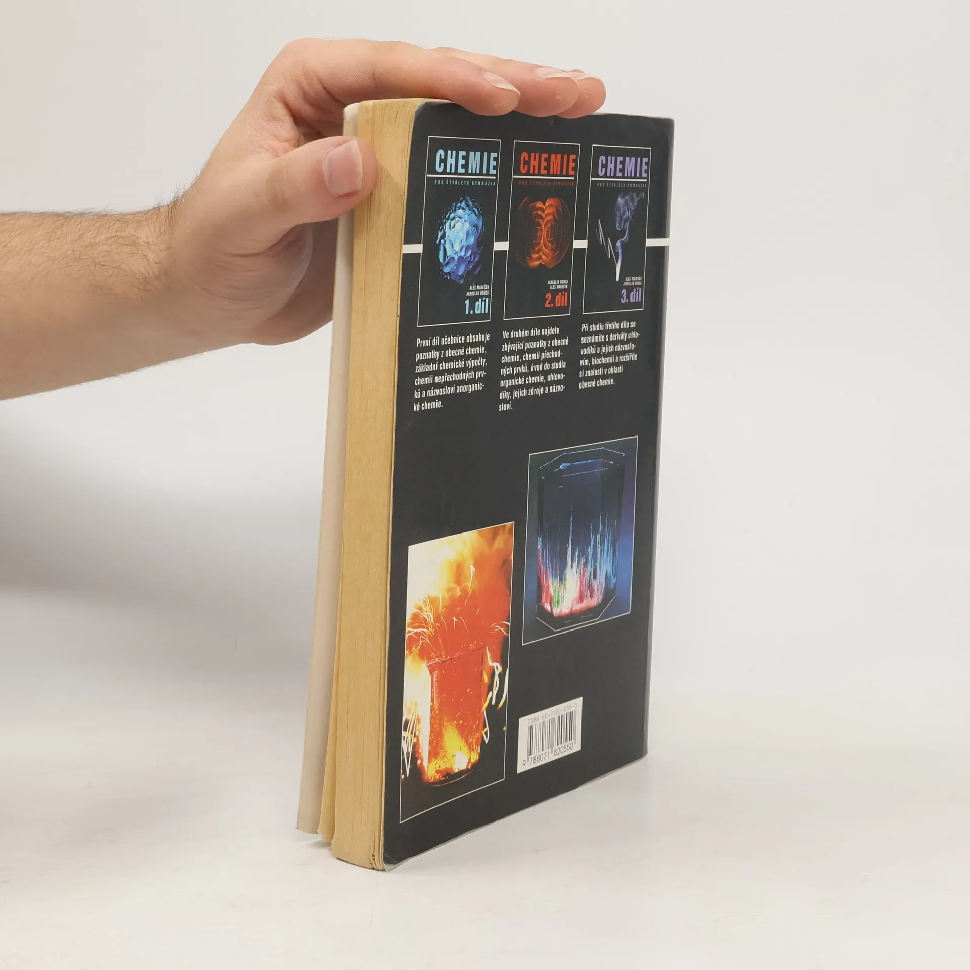 První díl učebnice určené studentům čtyřletých gymnázií. Kniha obsahuje poznatky z obecné chemie, základní chemické rovnice a výpočty, názvosloví anorg. chemie.