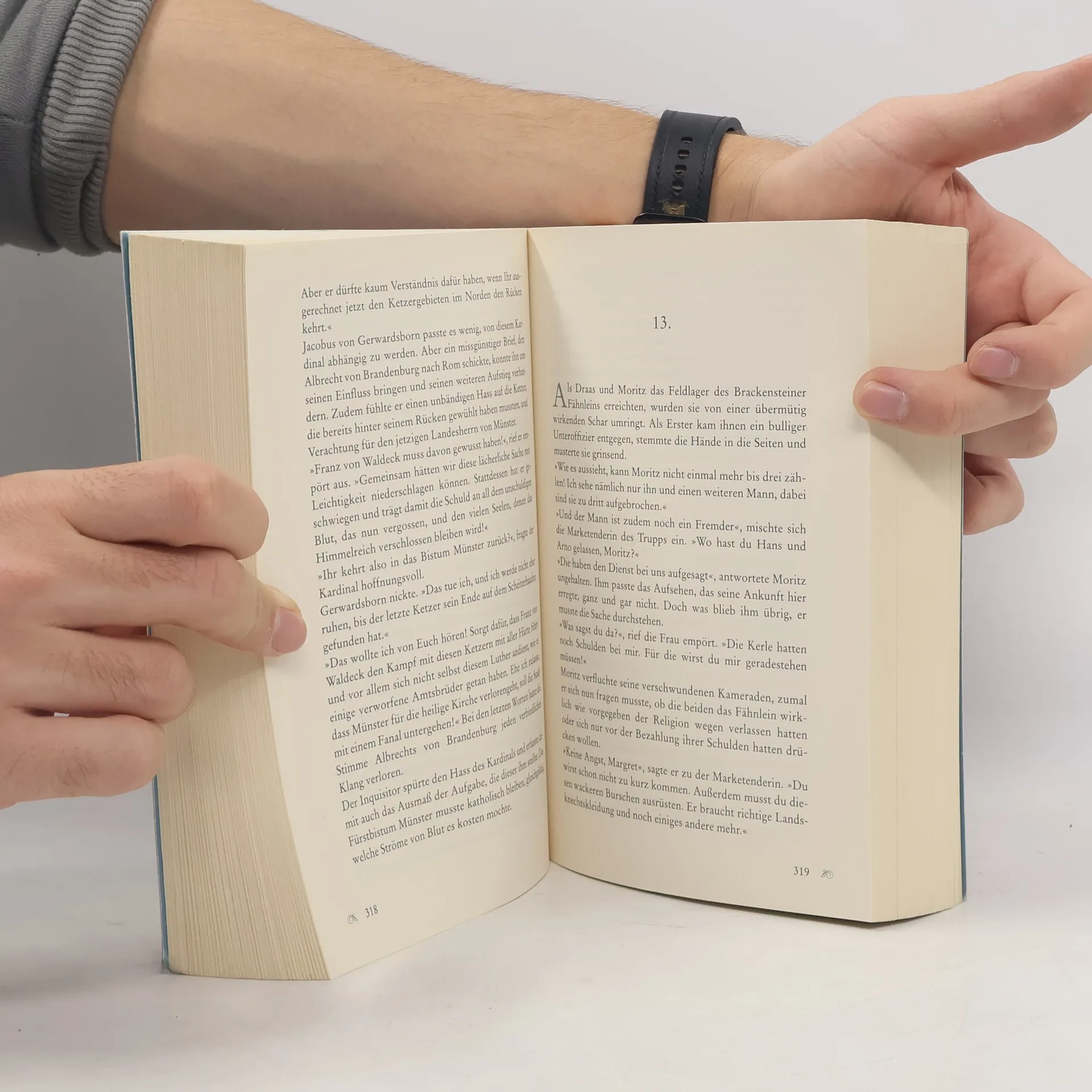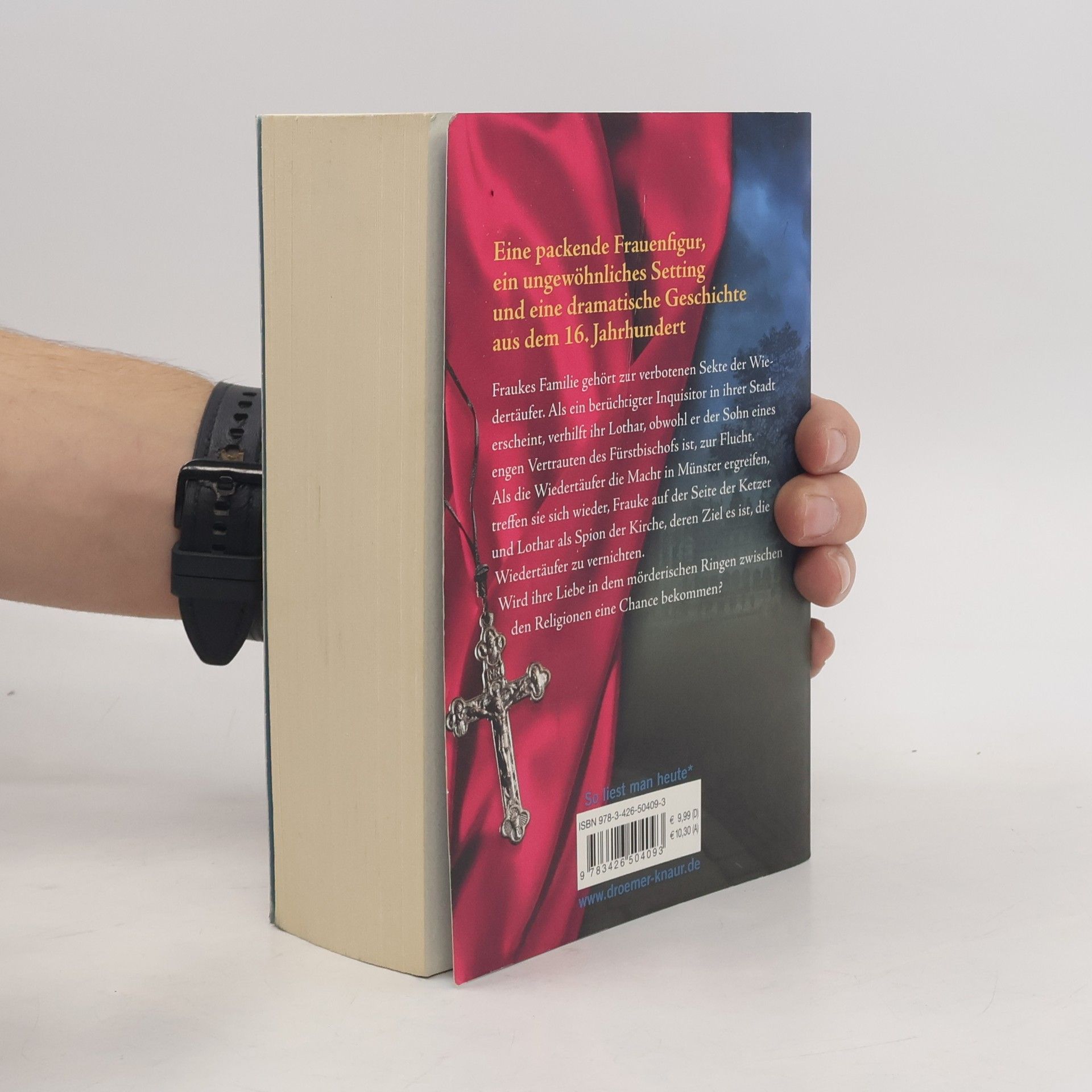 Münster im 16. Jahrhundert: Die Familie der jungen Frauke Hinrichs gehört zur verbotenen Sekte der Wiedertäufer und führt ein unauffälliges Leben, um nicht entdeckt zu werden. Als der berüchtigte Inquisitor Jakobus von Gerwardsborn in ihrer Stadt erscheint, werden sie schon bald bezichtigt, Ketzer zu sein. Der Rat der Stadt ist froh, dem unbarmherzigen Schlächter ein Opfer nennen zu können, und so gerät Frauke in dessen Hand. Lothar, der Sohn eines engen Vertrauten des Fürstbischofs von Münster, rettet Frauke vor dem Scheiterhaufen, verliert sie aber bald aus den Augen. Als die Anführer der Wiedertäufer ihre Anhänger nach Münster rufen, um dort das himmlische Jerusalem zu erschaffen, sehen Frauke und ihr Retter sich wieder. Doch sie gehört zu jenen, die der Fürstbischof unter allen Umständen vernichten will, und Lothar soll die Täufer ans Messer liefern.