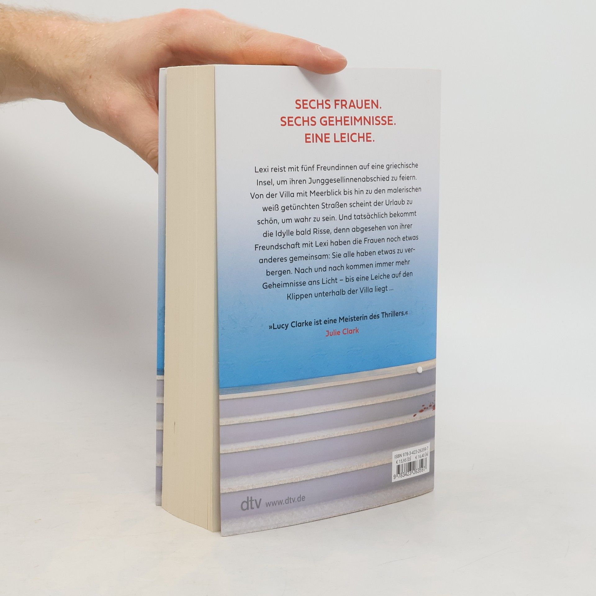 Sechs Frauen. Sechs Geheimnisse. Eine Leiche. Es sollte der perfekte Kurzurlaub werden: Lexi reist mit fünf Freundinnen auf eine griechische Insel, um ihren Junggesellinnenabschied zu feiern. Von der abgelegenen Villa mit Meerblick bis hin zu den malerischen Tavernen und weiß getünchten Straßen scheint der Urlaub zu schön, um wahr zu sein. Und tatsächlich bekommt die Idylle bald Risse, denn abgesehen von ihrer Freundschaft mit Lexi haben die Frauen nur eines gemeinsam: Sie alle haben etwas zu verbergen. Nach und nach kommen versteckte Absichten ans Licht, Geheimnisse werden enthüllt und die Masken fallen – bis eine Leiche auf den Klippen unterhalb der Villa liegt…
