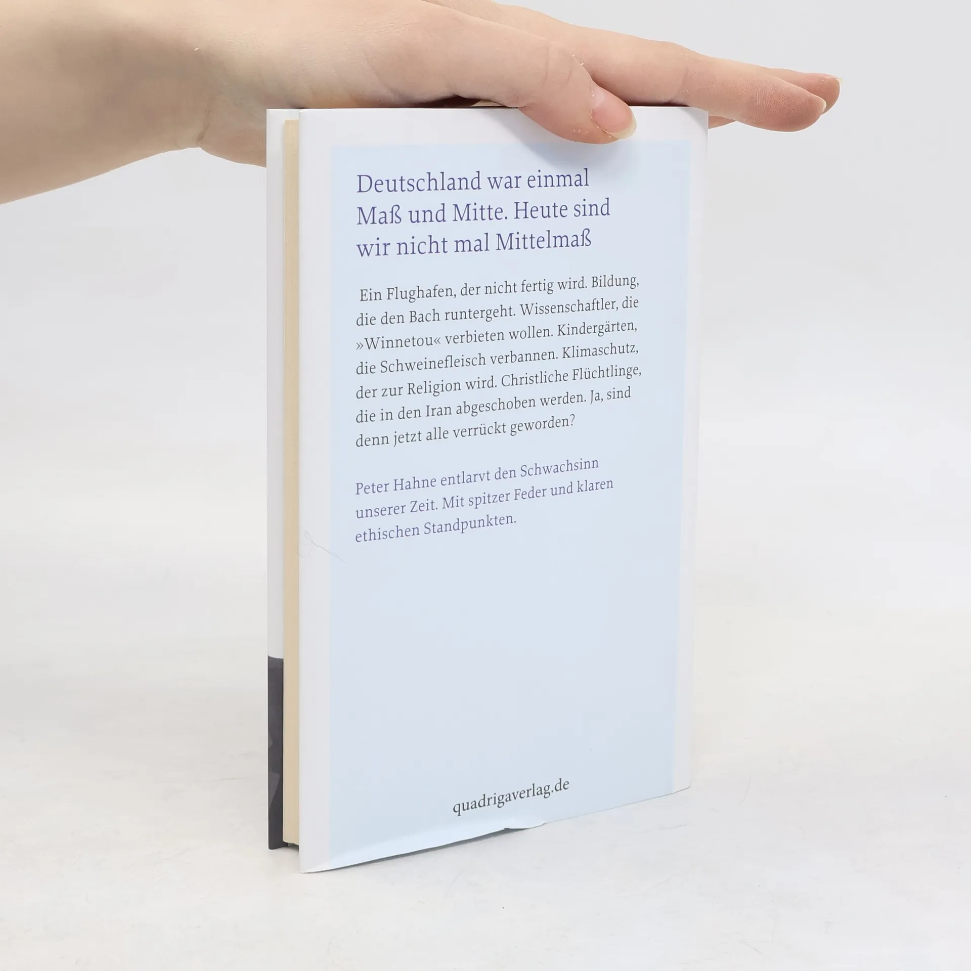 Deutschland war einmal Maß und Mitte. Heute sind wir nicht mal Mittelmaß. Ein Flughafen, der nicht fertig wird. Bildung, die den Bach runtergeht. Wissenschaftler, die „Winnetou“ verbieten wollen. Kindergärten, die Schweinefleisch verbannen. Klimaschutz, der zur Religion wird. Christliche Flüchtlinge, die in den Iran abgeschoben werden. Ja, sind denn jetzt alle verrückt geworden? Peter Hahne entlarvt den Schwachsinn unserer Zeit. Mit spitzer Feder und klaren ethischen Standpunkten.