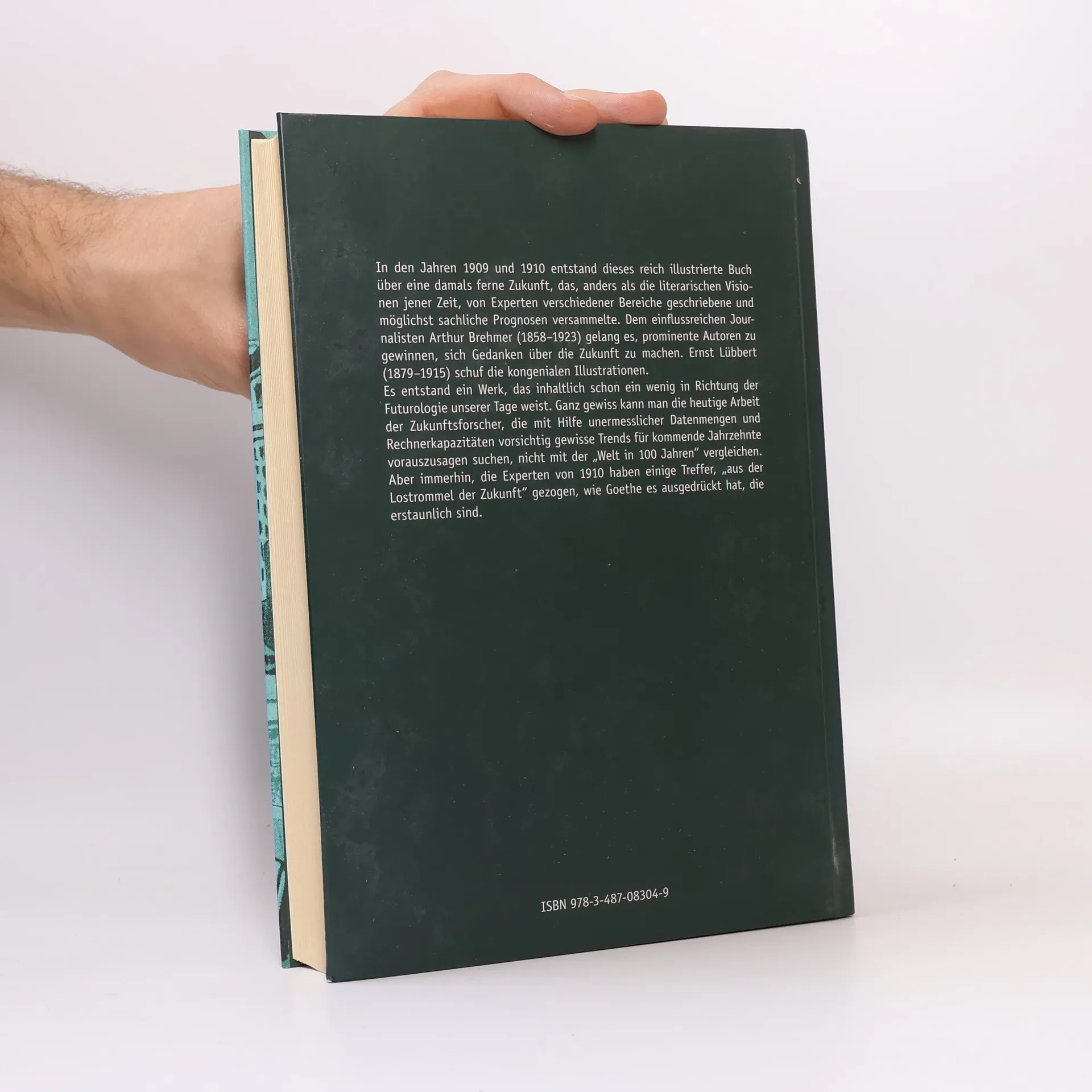 n den Jahren 1909 und 1910 entstand dieses reich illustrierte Buch über eine damals ferne Zukunft, das, anders als die literarischen Visionen jener Zeit, von Experten verschiedener Bereiche geschriebene und möglichst sachliche Prognosen versammelte. Dem einflussreichen Journalisten Arthur Brehmer (1858–1923) gelang es, prominente Autoren zu gewinnen, sich Gedanken über die Zukunft zu machen. Ernst Lübbert (1879–1915) schuf die kongenialen Illustrationen. Es entstand ein Werk, das inhaltlich bereits in Richtung der Futurologie unserer Tage weist. Ganz gewiss kann man die heutige Arbeit der Zukunftsforscher, die mit Hilfe unermesslicher Datenmengen und Rechnerkapazitäten vorsichtig gewisse Trends für kommende Jahrzehnte vorauszusagen suchen, nicht mit der „Welt in 100 Jahren“ vergleichen. Aber immerhin, die Experten von 1910 haben einige Treffer, „aus der Lostrommel der Zukunft“ gezogen, wie Goethe es ausgedrückt hat, die erstaunlich sind.