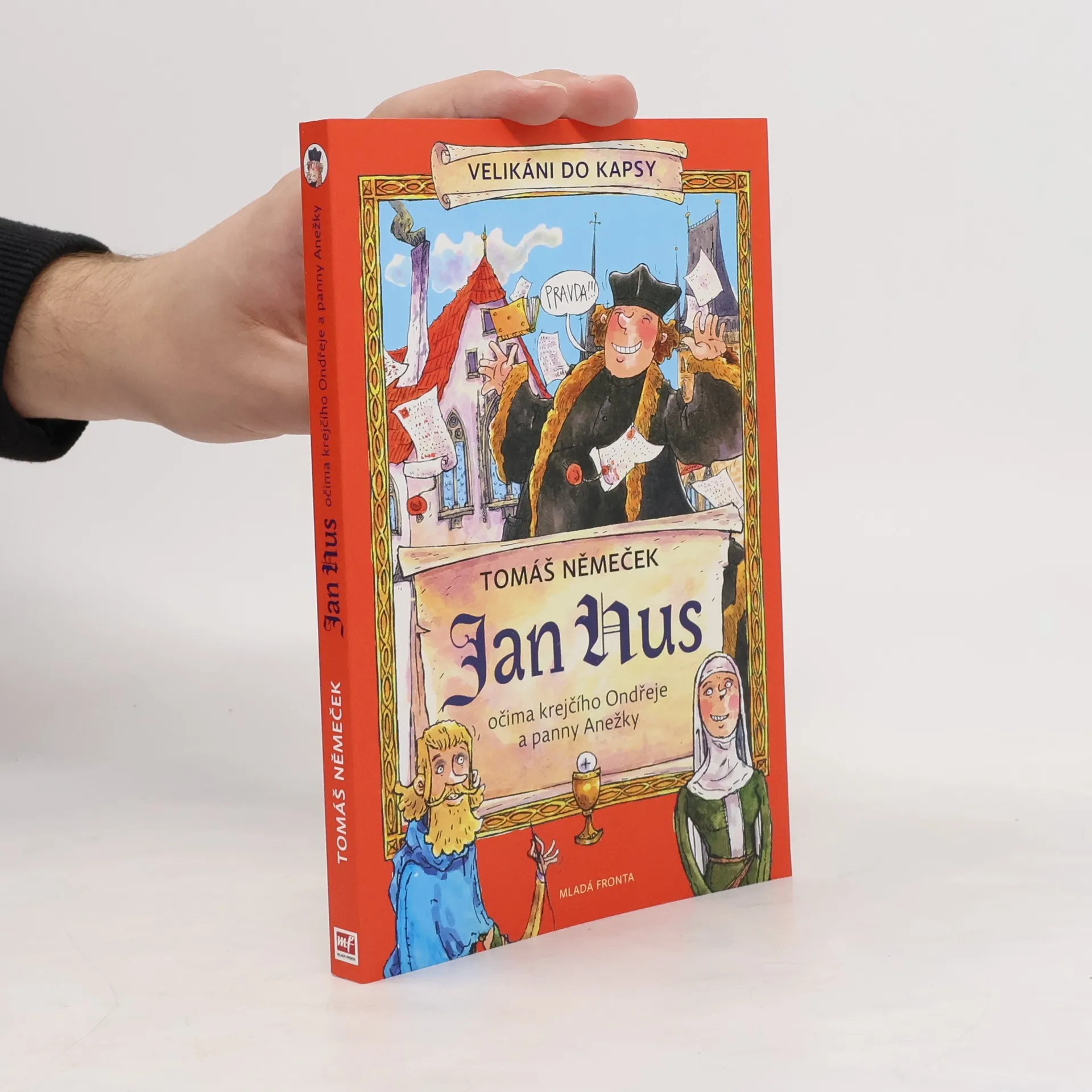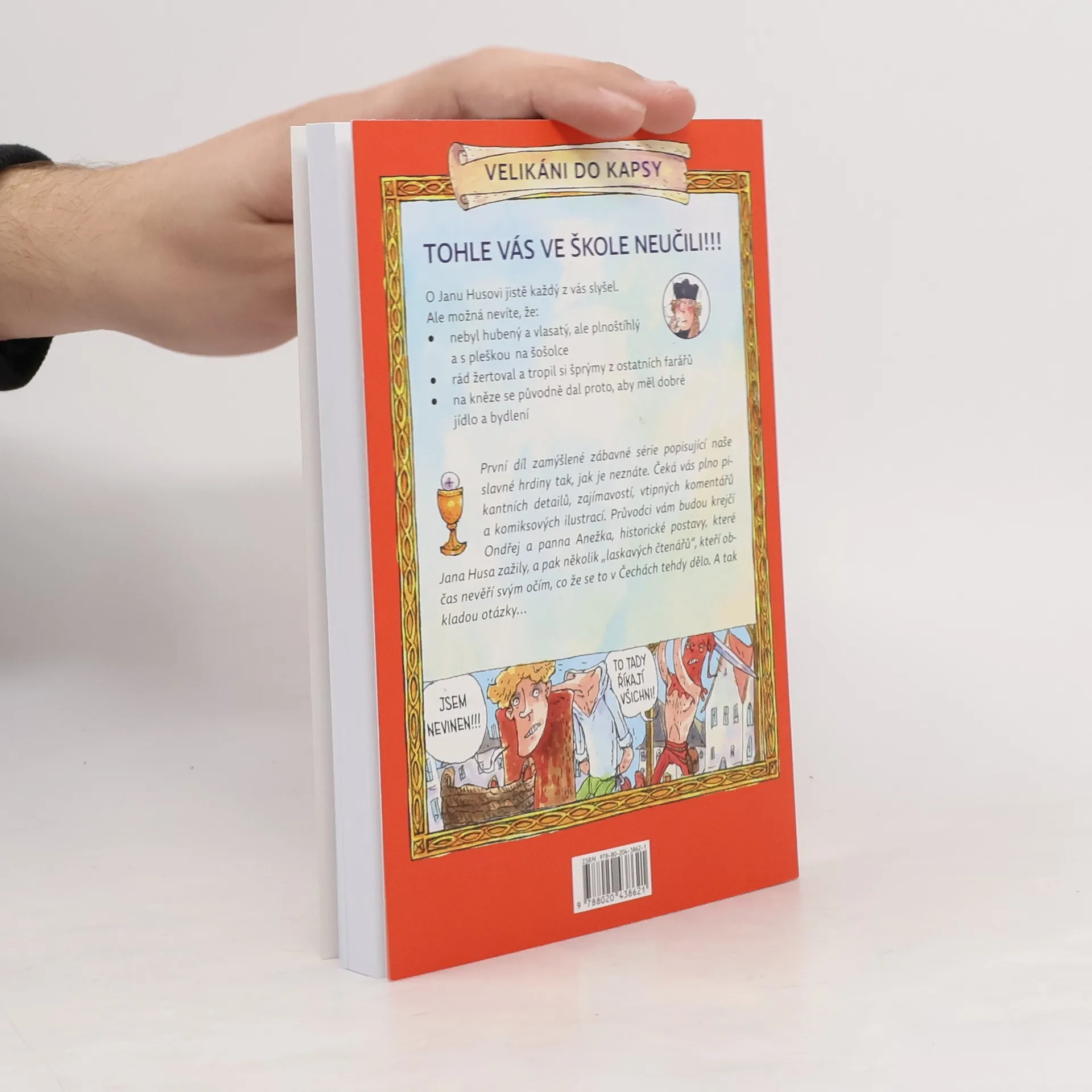 První díl zamýšlené zábavné série popisující naše slavné hrdiny tak, jak je neznáte. Čeká vás plno pikantních detailů, zajímavostí, vtipných komentářů a komiksových ilustrací. Průvodci vám budou krejčí Ondřej a panna Anežka, historické postavy, které Jana Husa zažily, a pak několik „laskavých čtenářů“, kteří občas nevěří svým očím, co že se to v Čechách tehdy dělo. A tak kladou otázky… O Janu Husovi jistě každý z vás slyšel. Ale možná nevíte, že: – nebyl hubený a vlasatý, ale plnoštíhlý a s pleškou na šošolce – rád žertoval a tropil si šprýmy z ostatních farářů – na kněze se původně dal proto, aby měl dobré jídlo a bydlení