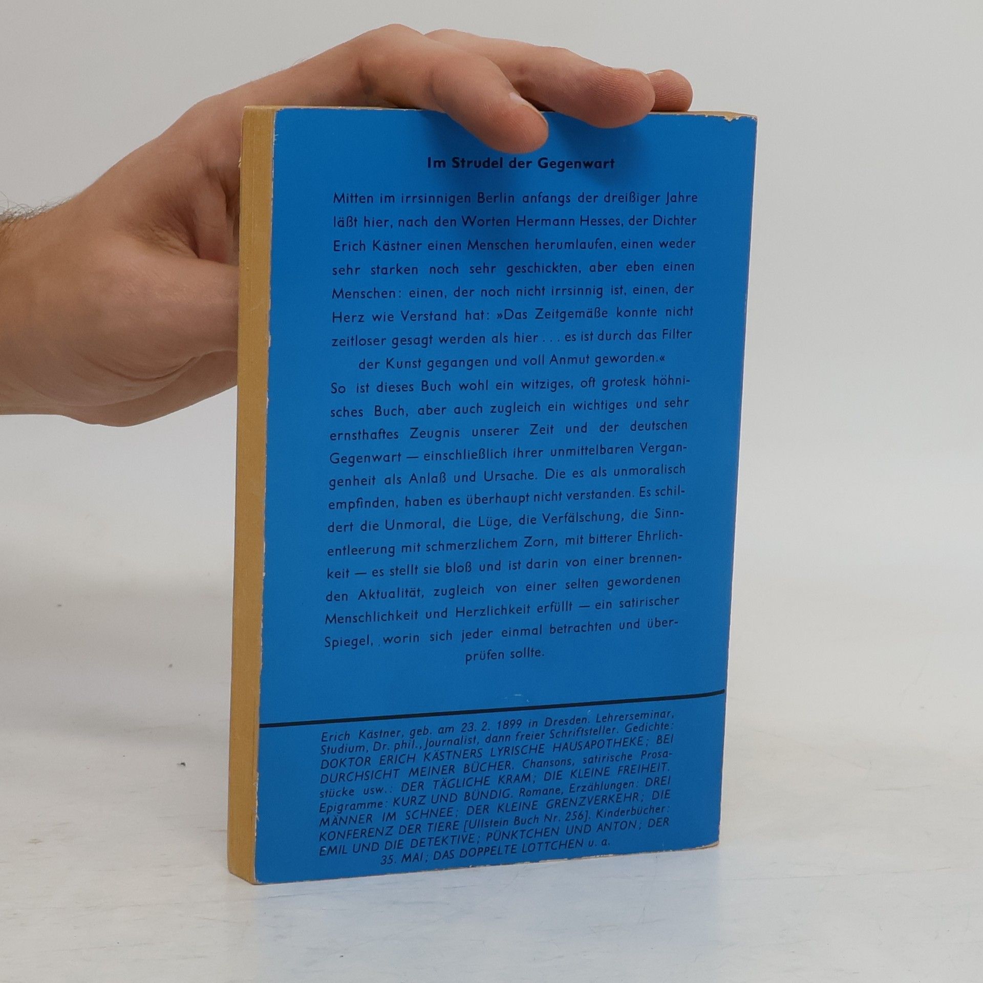 Bissig und schonungslosEine brillante und provokante Großstadtsatire im Berlin der frühen 30er Jahre. »Satirischer Roman von Erich Kästner, erschienen 1931. - Das Werk gilt als eine der brillantesten Satiren auf deutsche, insbesondere Berliner Zustände am Ende der zwanziger Jahre und während der großen Wirtschaftskrise um 1930. Titelheld ist der zweiunddreißigjährige Germanist Dr. Jakob Fabian, bisher Adressenschreiber, nun Reklametexter für eine Zigarettenfirma, ein »zarter Ironiker«, der »auf den Sieg der Anständigkeit wartet«, nicht gerade lebenstüchtig ist und von den Menschen immer wieder übervorteilt wird.«