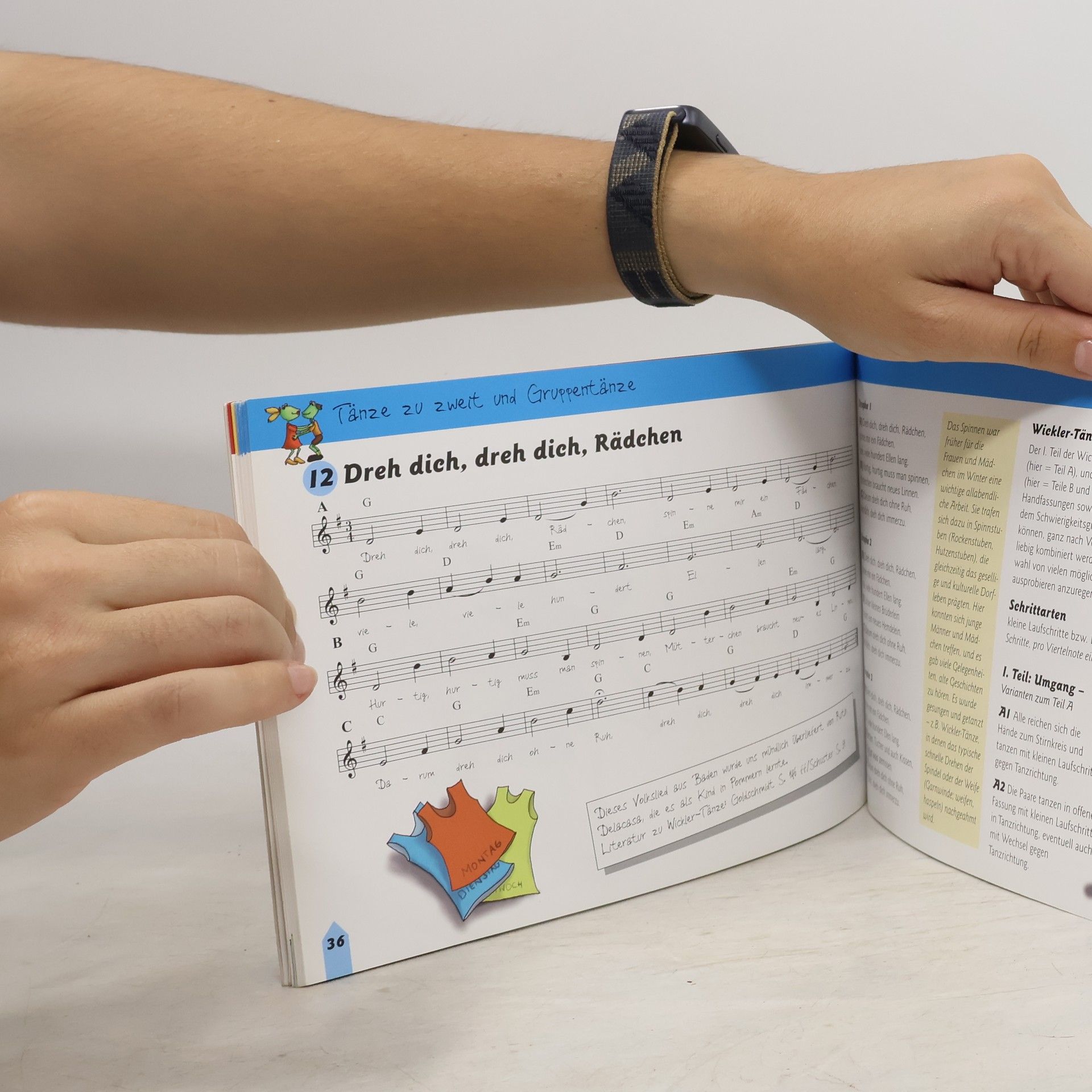 Die vorliegende Sammlung enthält Kinder- und Volkstänze aus dem Fundus unseres folkloristischen Erbes. Es sind Tänze, die immer wieder mündlich weitergegeben und über die Jahrhunderte und Generationen stets neu "zurechtgetanzt und -gesungen" wurden. Ein Teil hat sich bis heute im Volks- und vor allem im Kindermund erhalten, einen anderen verdanken wir der Sammelleidenschaft unserer Altvorderen, die so manches archivierten, bevor es für immer aus dem Gedächtnis des Volkes verschwand. Für mich ergab sich die Beschäftigung mit Volks- und Kindertänzen aus der Tanzhaus-Euphorie zu Anfang der 80er Jahre, als wir, beflügelt durch die allenthalben grassierende unbändige Tanzlust, in der Schober der Archive krochen, um möglichst viele Tanzschmeckerchen der Vergessenheit zu entreißen. Die anfängliche Tanzanarchie wich nach 1984 einer zunehmend systematischen und ernsthaften Arbeit, zunächst mit Erwachsenen, seit 1988 in der Hauptsache mit Kindern. Kinder setzen sich gern tanzend und singend mit ihrer Umwelt auseinander. Rhythmisches Bewegen eröffnet ihnen Möglichkeiten, ihre ureigene Musikalität und Beweglichkeit zu entwickeln. Gemeinsames Tanzen und Singen fördert ihr soziales Gespür und die Kommunikation untereinander. Nicht zuletzt macht es Spaß, miteinander zu tanzen und zu singen und so Körper, Geist und Seele in Bewegung zu halten. Die Menschen haben jedoch schon vor Tausenden von Jahren nicht nur aus Spaß an der Freude getanzt; in ihren Tänzen spiegelte sich in erster Linie ihr Alltag mit seinen Nöten und Annehmlichkeiten wider: da gab es Frauen- und Männertänze, Hochzeitstänze, Tänze einzelner Gewerke, jahreszeitliche Reigen u.v.a.m. Die Kinder haben all diese Tänze stets mit- oder für sich zurechtgetanzt. Sie lernten so, am Leben der Gemeinschaft teilzunehmen, sich zu orientieren, durch Nachahmung der Erwachsenen zu lernen. Erstaunlicherweise lassen sich Kinder auch heute noch für diese alten Tänze begeistern, obwohl ihnen - namentlich über die Medien - eine gänzliche andersartige Wertewelt vermittelt wird. In Weiterbildungskursen für ErzieherInnen wurde ich oft nach Literatur und Musikbeispielen gefragt, die ihnen in ihrer eignen Arbeit mit Kindern behilflich sein könnten. Natürlich gibt es Tanzsammlungen in kaum übersehbarer zahl; die vorliegende mag sich von vielen anderen darin unterscheiden, daß sie ausschließlich nach praktischen Kriterien zusammengestellt wurde und nur Tänze und Tanzspiele enthält, die sich in meiner Arbeit mit kleinen und großen Tänzern stets aufs neue bewährt haben. Zudem gelang es, befreundete Musiker und einige meiner kleinen TänzerInnen dafür zu gewinnen, die Melodien und Tanzlieder für die beiliegende CD einzuspielen und zu singen. So wird auch dem musikalischen Laien ein Zugang zu den Stücken ermöglicht. Wer die Melodien hört, wird gewiß hier und da denken: das kenn? ich doch! - vielleicht sogar aus der eigenen Kindheit. Denn obwohl für fast alle Tänze Belege in der einschlägigen Literatur beigefügt wurden, sind uns viele mündlich überliefert worden. Daher weichen die hier wiedergegebenen Tanzweisen, Texte und Schritte oft von der Literatur ab - ein beredtes Zeugnis dafür, daß ihrer viele immer noch im Volksmund leben und bis dato der Neokultur erfolgreich zu trotzen vermochten. Bleibt mir, mich bei allen Freunden und Kollegen zu bedanken, die in irgendeiner Weise am Zustandekommen des Büchleins beteiligt waren. Für alle Kinder und jene, die sich mit Kindern beschäftigen ist unser Büchlein gedacht, aber auch für alle, die einfach nur Freude und Spaß am Tanzen, Singen und Musizieren haben. Möge es sein Publikum finden und zu geselligem Miteinander beitragen, dann sich die Arbeit aller Beteiligten gelohnt. Sigrid Doberenz Leipzig im August 1995 Inhaltsverzeichnis CD 1: / 1. Der Spielmann / 2. Es kamen zwei geritten / 3. Es geht nichts über die Gemütlichkeit / 4. Hier liegt 'n Appel, und da liegt 'ne Birn / 5. Kiekbusch / 6. Kleiner Schelm / 7. Ri-ra-rutsch / 8. Schustertanz / 9. Wenn wir im Sommer... / 10. Kikeriki / 11. Der Vogelsteller / 12. Herr Schmidt / 13. Bruder Leichtfuß / 14. Schnedderedäng / 15. Der Kornmäher / 16. Die Merseburger Brücke / 17. Widewidewitt - Siebensprung / 18. Wir treten auf die Kette / 19. Guten Tag, Frau Schneiderlein / 20. Ich bin die kleine Schnecke / 21. Das Taubenhaus / 22. Schornsteinfeger ging spazieren / 23. Jetzt tanzt Hampelmann / 24. Wenn ich morgens früh aufstehe / 25. Der Kaiser von Rom /