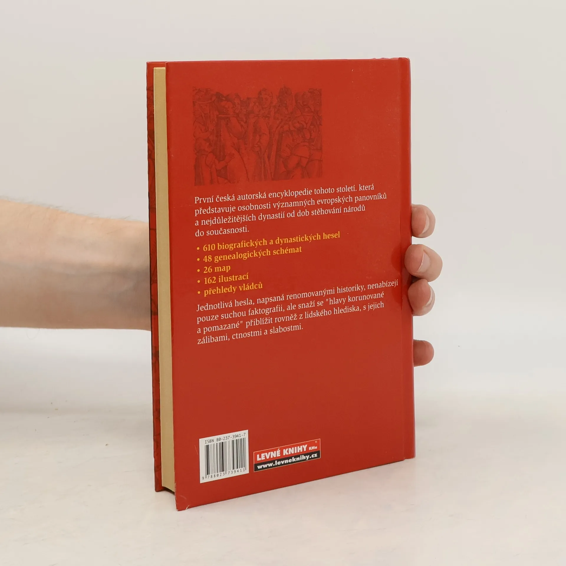 Encyklopedie. Původní dílo českých historiků. Kromě Evropy obsahuje biografická hesla věnovaná též vládcům Byzance, Balkánu a Ruska. Doplněno přehledem vládnoucích dynastií jednotlivých evropských zemí a genealogickými schématy. Významní evropští panovníci a panovnické rody od 5. do 20. stol.
