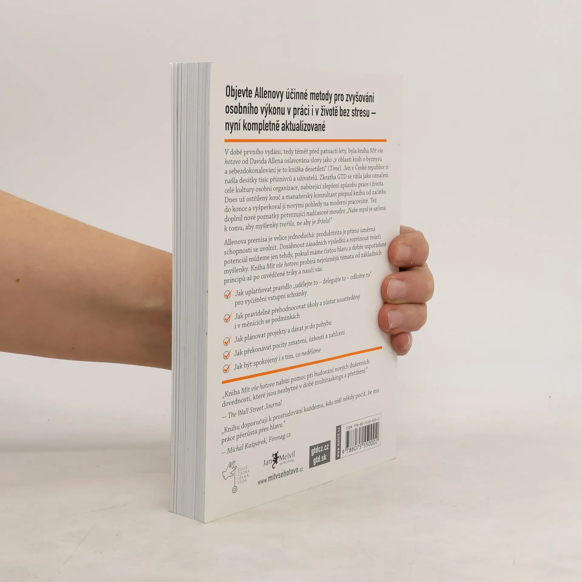 David Allen vás nenaučí organizovat pracovní úkoly, abyste pracovali více, ale naopak! Zavedením metodologie GTD do vašeho pracovního života zefektivníte práci, získáte volný čas, zbavíte se stresu a zklidníte mysl. Vedlejším účinkem je i zlepšení kvality spánku a vnitřní spokojenosti. Tato kniha se odlišuje od ostatních publikací o produktivitě. Poprvé vyšla před patnácti lety a od té doby se stala fenoménem s třemi miliony prodaných výtisků ve více než 30 jazycích. Statisíce lidí díky metodě GTD plánují svůj čas a věnují se práci, rodině i koníčkům. Účastníci kurzů a workshopů prohloubili znalosti natolik, že je mohli zavést do firem, což vedlo k lepší organizaci a spokojenosti zaměstnanců. Podle časopisu TIME je tato kniha nejlepší knihou desetiletí v oblasti osobního rozvoje. David Allen přepsal původní rukopis, zrevidoval obsah a jazyk, přičemž zachoval základní principy a techniky. Považován za jednoho z nejvlivnějších myslitelů v osobní produktivitě, Allen pracuje pro významné organizace a vede workshopy po celém světě. S více než pětatřicetiletou praxí manažerského konzultanta a kouče je jeho práce často zmiňována v prestižních periodikách. Allen žije v Amsterdamu.