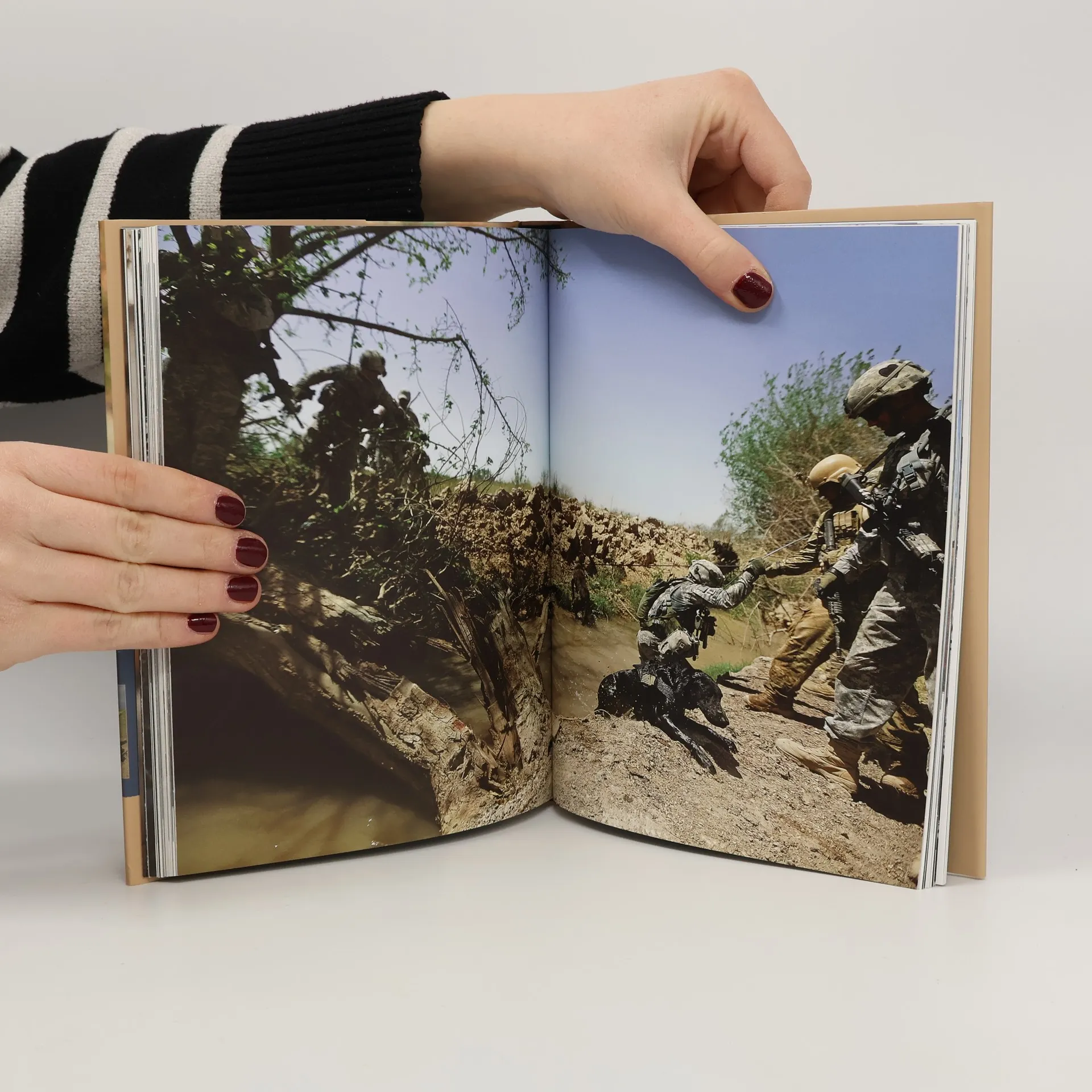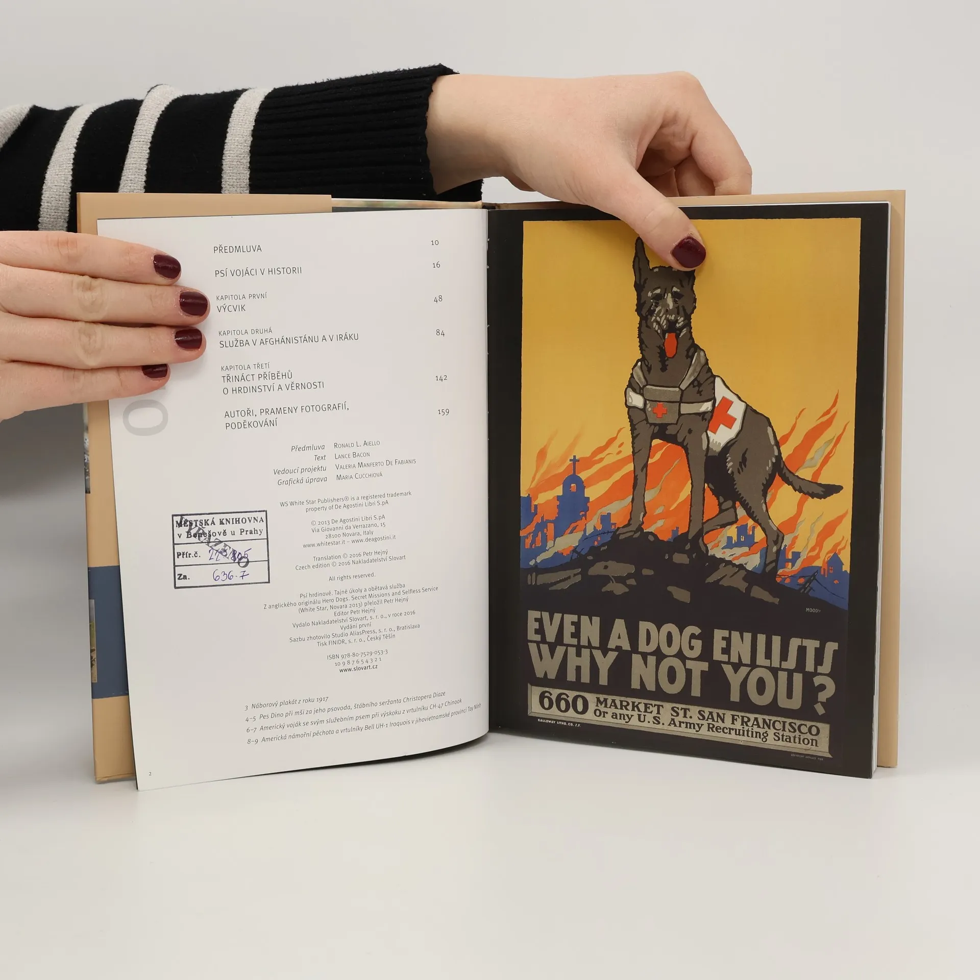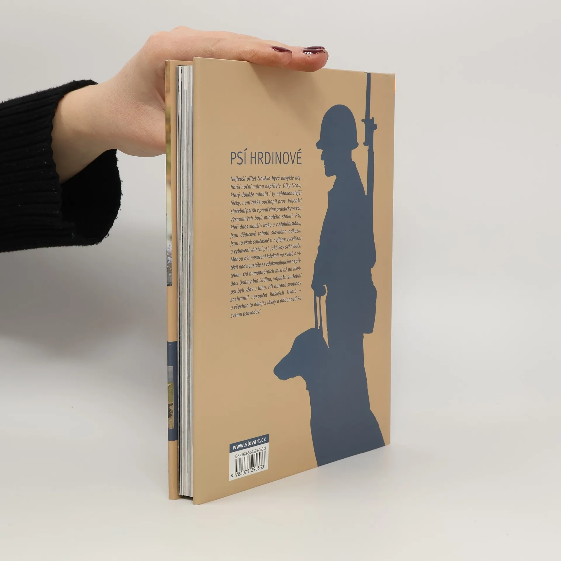Tato obrazová kniha začíná poctou práci válečných psů v minulém století. Poté čtenáři pomocí fotografií a pohledů do zákulisí seznamuje s tím, jak probíhá pečlivý výběr a měsíce tvrdého výcviku, jež jsou zapotřebí, aby pes mohl být zařazen mezi elitní vojenské služební psy. Desítky dosud nezveřejněných fotografií ilustrují příběhy o obětavé službě těchto psů v Iráku a v Afghánistánu, jež vyprávějí psovodi a velitelé, kteří je zažili, a vypovídají o doživotním poutu, jež se mezi psovodem a jeho psem vytvoří v bojové zóně. Mnoho válečných psů si v těchto podmínkách vysloužilo uznání za svoje hrdinské činy. Patří k nim i psi Antis a Athos, kteří sloužili s československými a českými vojáky za 2. světové války a v Afghánistánu.
