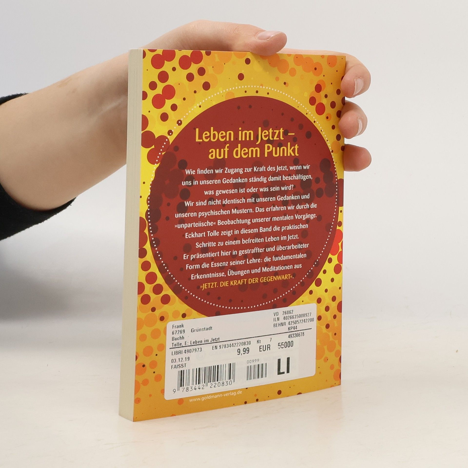 „Leben im Jetzt” zeigt Ihnen, wie Sie aus dem permanenten Gedankenkino aussteigen und festgefahrene Verhaltensmuster ablegen können. Es präsentiert in gestraffter und überarbeiteter Form die Essenz aus „Jetzt! Die Kraft der Gegenwart“. Der Weg ins Jetzt führt über die „unparteiische“ Beobachtung unserer mentalen Vorgänge. Hierdurch wird uns bewusst, dass wir mehr sind als unsere Gedanken und psychologischen Reaktionen. Wir realisieren, dass wahrhaft Großes wie Liebe, Schönheit, Kreativität, Freude und innerer Friede einem Bereich jenseits unseres begrenzten Verstandes und unserer Persönlichkeit entstammen. Alte Probleme beginnen sich zu lösen, Leichtigkeit und Freude stellen sich ein, das Leben gelingt.