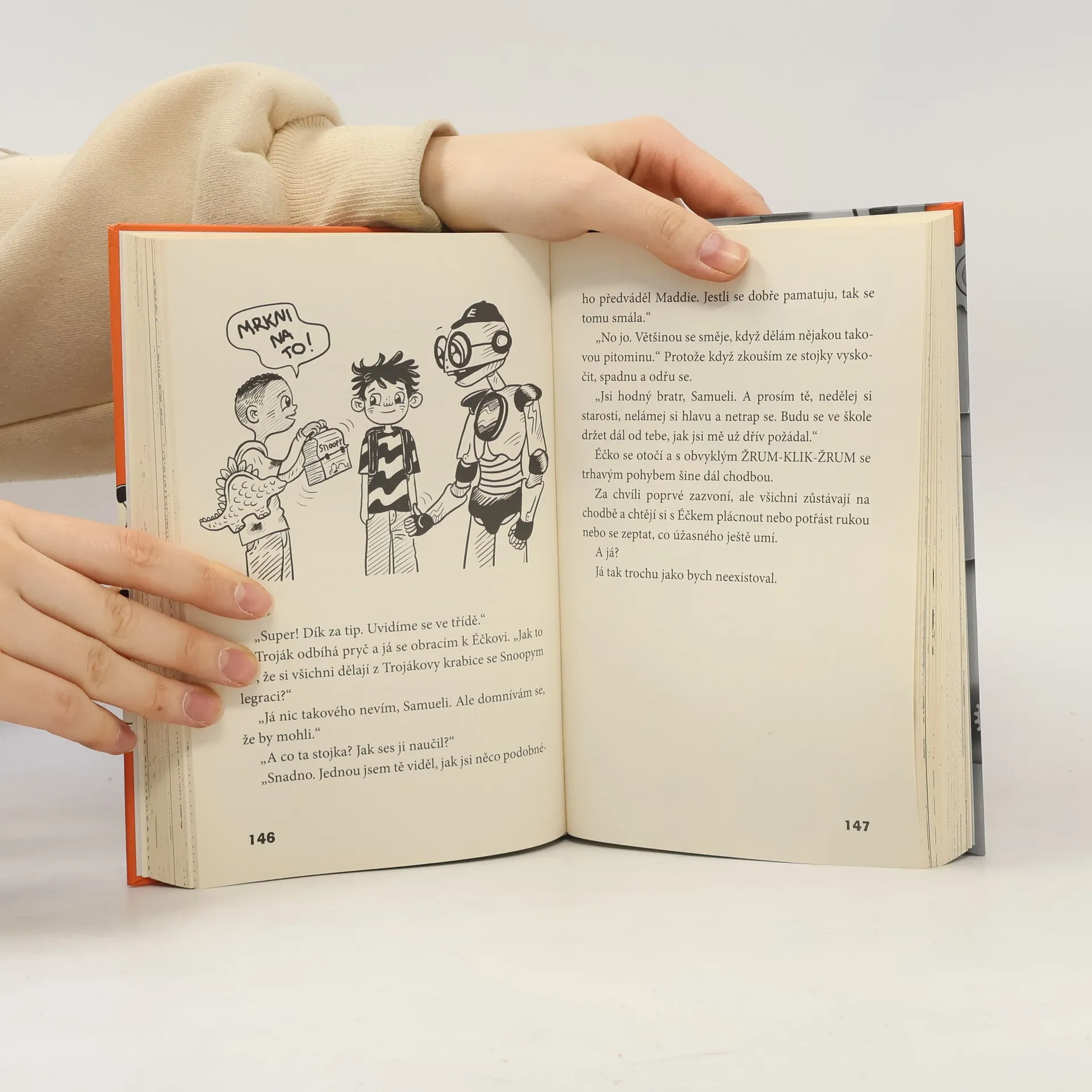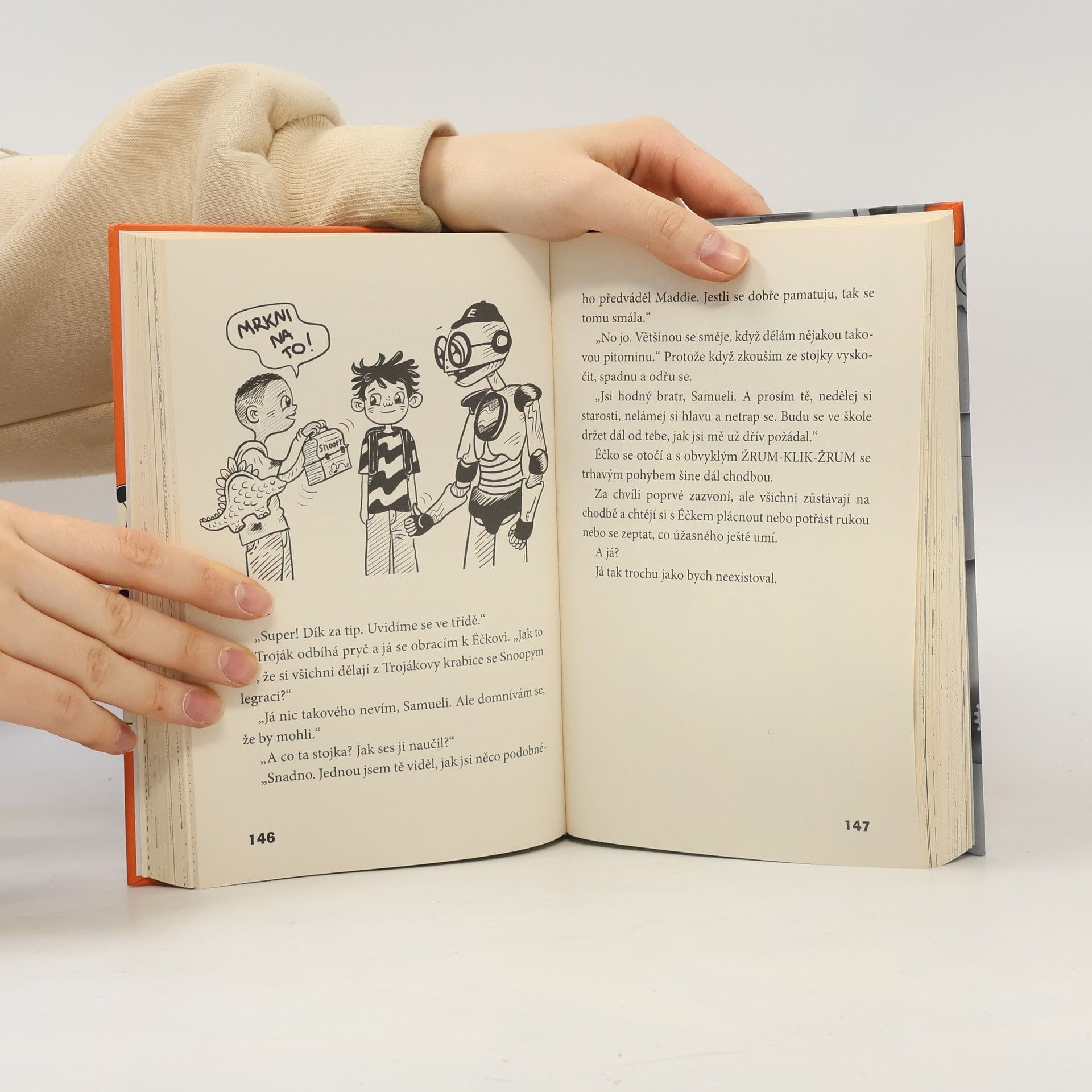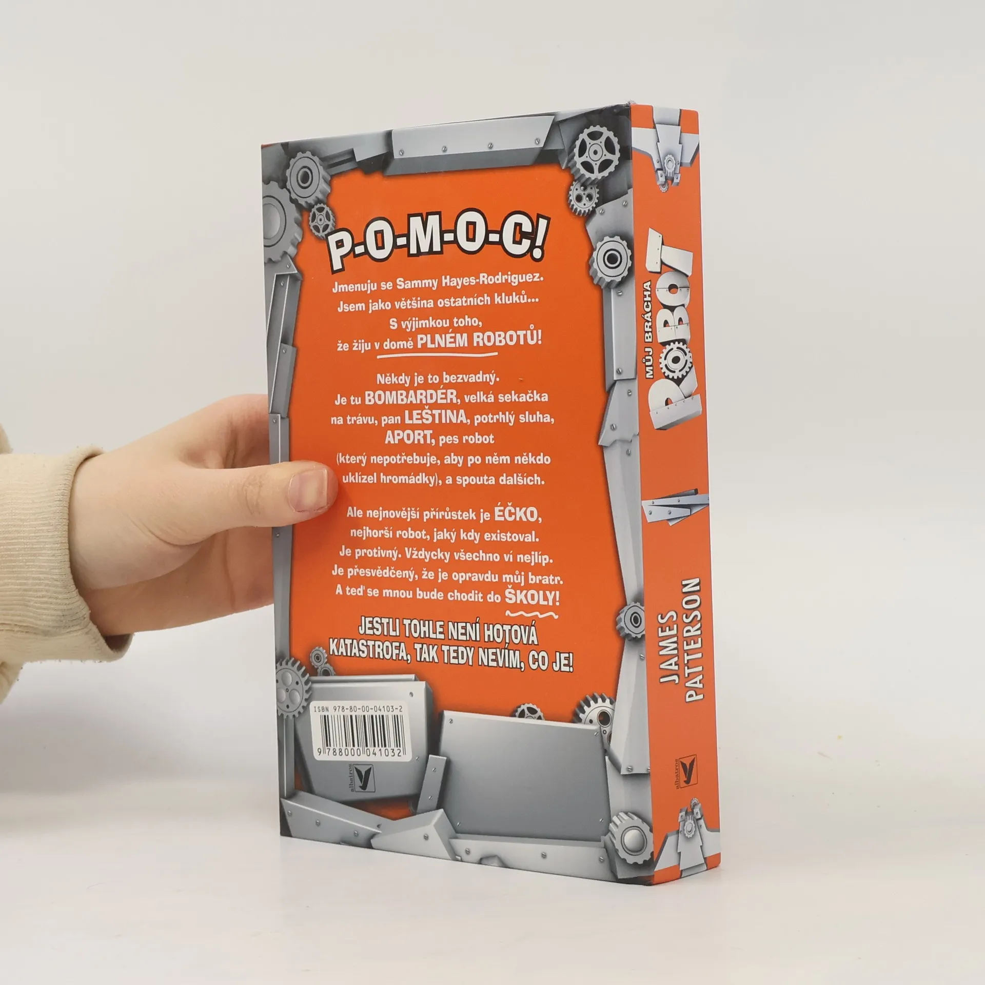 První díl nové série Jamese Pattersona, autora světových bestsellerů Můj nejhorší školní rok a Já, srandista. Bohatě ilustrovala Juliana Neufeldová. Páťák Sammy Hayes-Rodriguez nežije v tak úplně obyčejné rodině. Maminka je vědkyně a baví se vymýšlením robotů. Její nejnovější vynález se jmenuje Éčko a má chodit se Sammym do školy. A nejen to! Sammy se musí k robotovi chovat jako k vlastnímu bratrovi! Hrůza! Do třídního kolektivu nikdy moc nezapadal, a teď ještě musí chodit do školy s bráchou robotem, který je šprt. Spřátelí se Sammy s novým členem rodiny? A co spolužáci? Oblíbí si Éčka? Dočtete se v humorném vyprávění Jamese Pattersona.