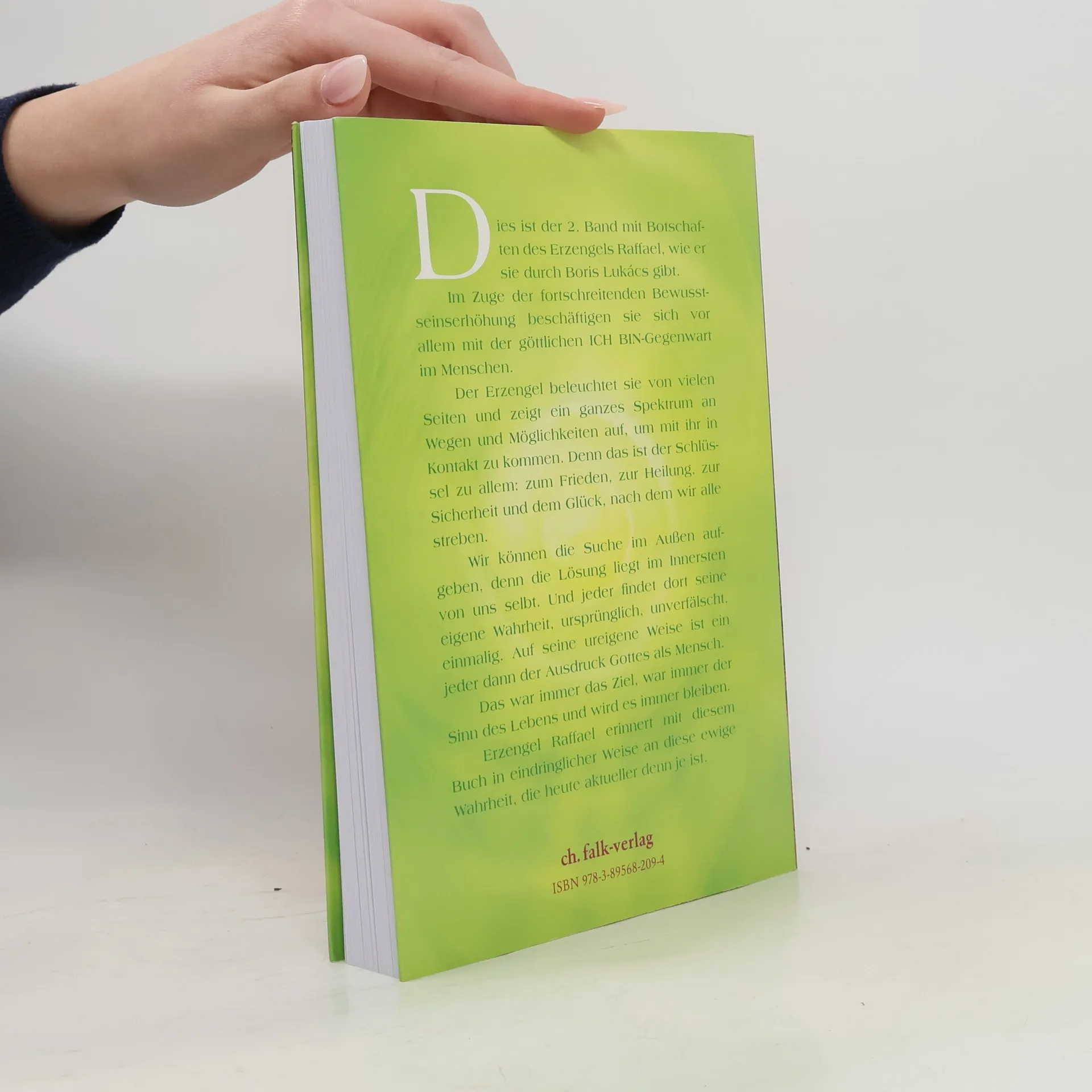 Nach einer Wartezeit von mehr als zwei Jahren, die sicher den vielen Raffael-'Fans' recht schwergefallen ist, dürfen wir endlich wieder etwas aus der Feder des Erzengels lesen! Welche Freude! Für ernsthafte Sucher auf dem spirituellen Pfad hat das, was der Erzengel des grüngoldenen Strahls zu sagen hat, immer ein ganz besonderes Gewicht, ist er doch wie kein anderer ein Meister der Klarheit, Kraft und Stärke. Ihm zu folgen, heißt, auf dem sicheren Weg zur Wahrheit zu sein. Und so betonen auch die neuen Texte wieder die vorrangige Bedeutung des göttlichen ICH BIN in einem jedem von uns und die Wichtigkeit, seine Aufmerksamkeit kontinuierlich auf diesen unseren Kern gerichtet zu halten, der uns direkt mit Gott verbindet; vor allem in der jetzigen Zeit, die voller überraschender Ereignisse steckt. Sich davon nicht aus der Ruhe, dem Glauben und Vertrauen bringen zu lassen - das ist es, was jetzt gelernt werden will. Da dreht es sich oft um die Gefühle, die rotieren; und auch dazu gibt Raffael Ratschläge, wie sie sich umwandeln lassen. So erhalten wir mit diesem zweiten seiner Botschaften-Bücher erneut tragende Hilfen, Ermutigung und Stärke auf unserem Weg zur Selbsterkenntnis.