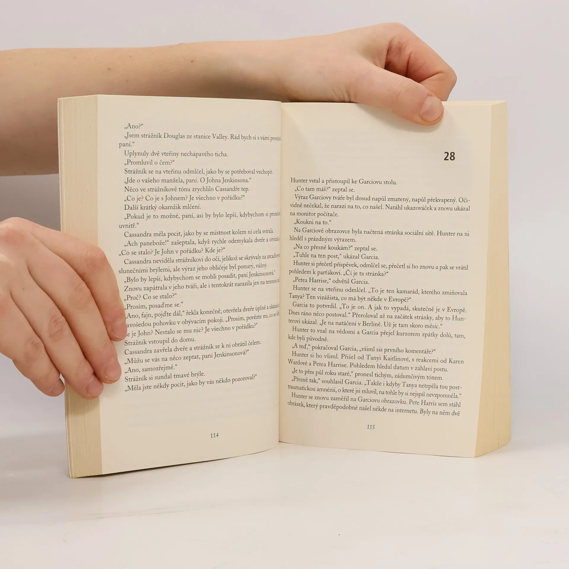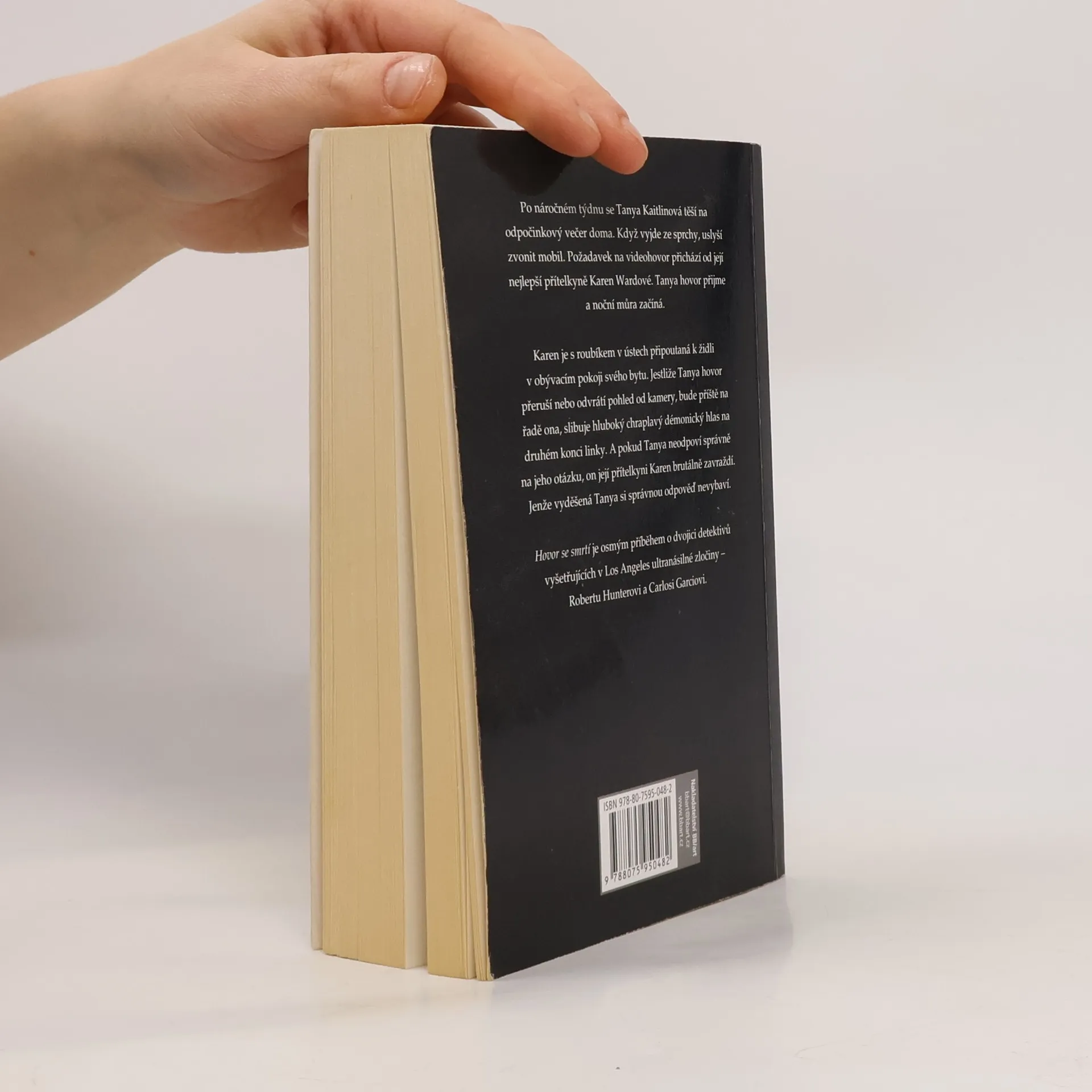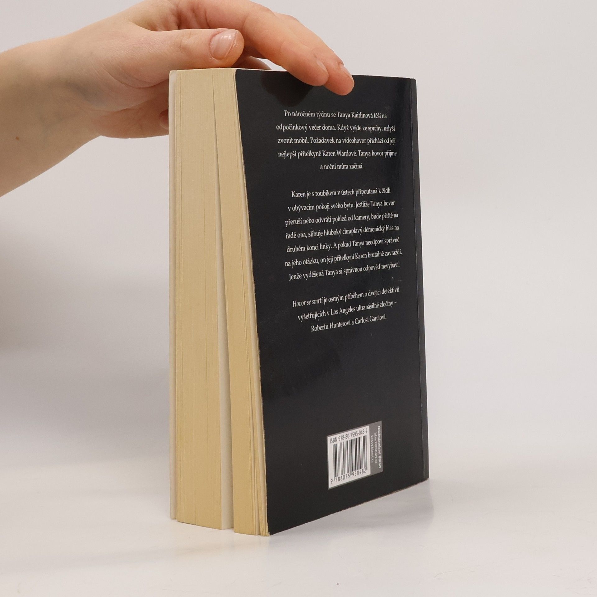 Losangeleští detektivové Hunter a Garcia se při vyšetřování nového případu ocitnou na horské dráze zla. Pronásledují predátora, který hledá v ulicích a na sociálních sítích oběti, dráždí je anonymními zprávami a živí se jejich strachem. přední záložka: Po náročném týdnu se Tanya Kaitilinová těší na odpočinkový večer doma. Když vyjde ze sprchy, uslyší zvonit mobil. Požadavek na videohovor přichází od její nejlepší přítelkyně Karen Wardové. Tanya hovor přijme a noční můra začíná. Karen je s roubíkem v ústech připoutaná k židli v obývacím pokoji svého bytu. Jestliže Tanya hovor přeruší nebo odvrátí pohled od kamery, bude příště na řadě ona, slibuje hluboký chraplavý démonický hlas na druhém konci linky. A pokud Tanya neodpoví pravdivě na jeho otázku, on její přítelkyni Karen brutálně zavraždí. Jenže vyděšená Tanya si správnou odpověď nevybaví.