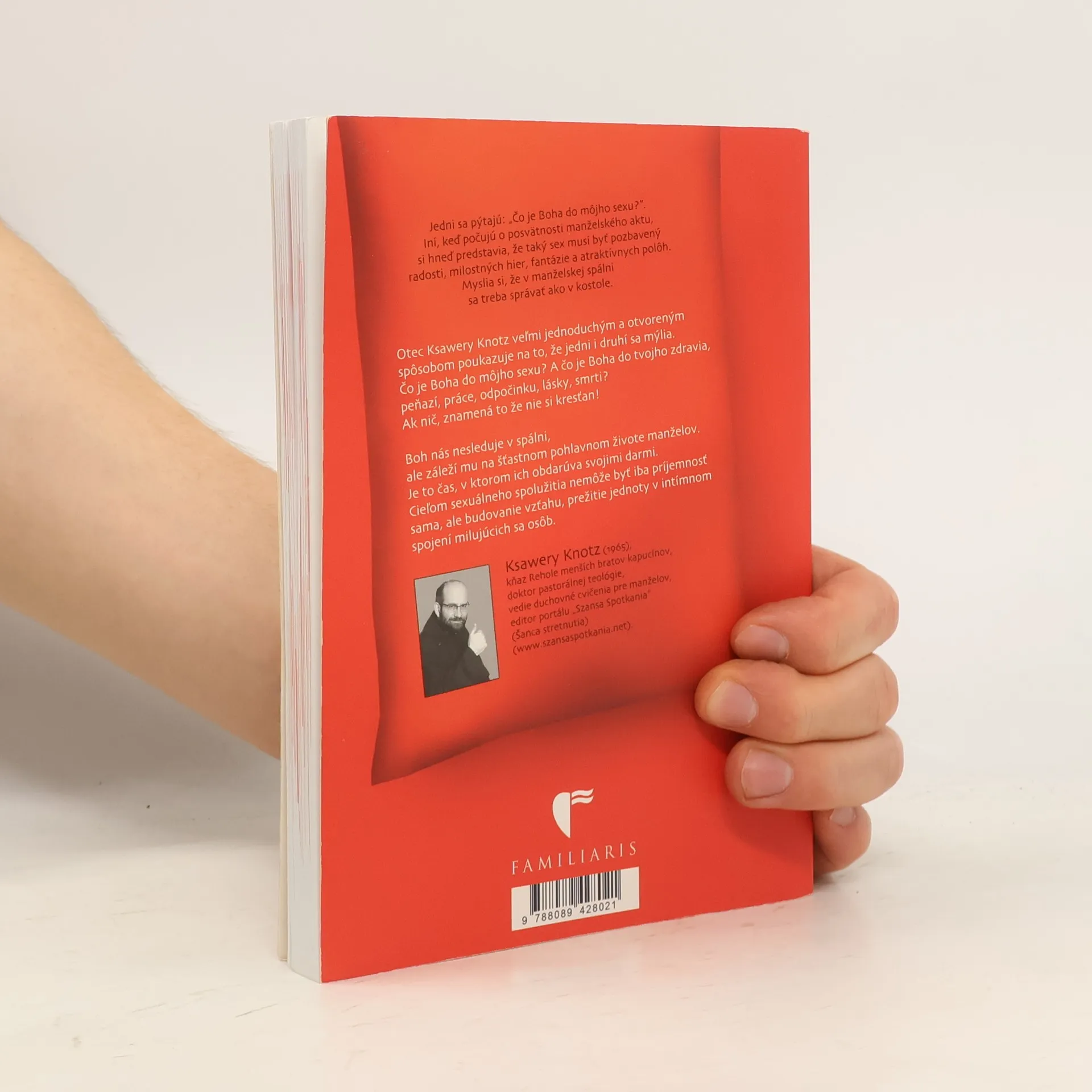 Jedni sa pýtajú: „Čo je Boha do môjho sexu?”, iní si myslia, že posvätnosť manželského aktu znamená absenciu radosti a fantázie. Otec Ksawery Knotz ukazuje, že obidve predstavy sú mylné. Boh sa zaujíma o šťastný pohlavný život manželov, ktorý je obdarovaný jeho darmi. Cieľom sexuálneho spolužitia nie je len potešenie, ale aj budovanie vzťahu a prežívanie jednoty v intímnom spojení. Kniha sa stala bestsellerom v Poľsku a vyvolala široký ohlas, pričom sa objavila v hlavných správach ako BBC a na Slovensku ju priniesla Markíza. Teraz vychádza aj v slovenskom vydaní, obohatená o kreslené vtipy a písaná zrozumiteľným spôsobom. Autor, poľský kapucínsky kňaz, otvorene píše o intímnych manželských témach a má bohaté skúsenosti s poradenstvom párom. Medzi témami, ktorým sa kniha venuje, sú otázky ako: Čo je Boha do môjho sexu? Čo sa smie pri sexe? Koľko detí by mal mať katolík? Ako je to s antikoncepciou? Aké ťažké sú sexuálne hriechy? Potešenie, ale pre obidvoch? Zdržanlivosť – trest alebo predohra? Kniha ponúka pohľad na intímny život z perspektívy viery a lásky.
