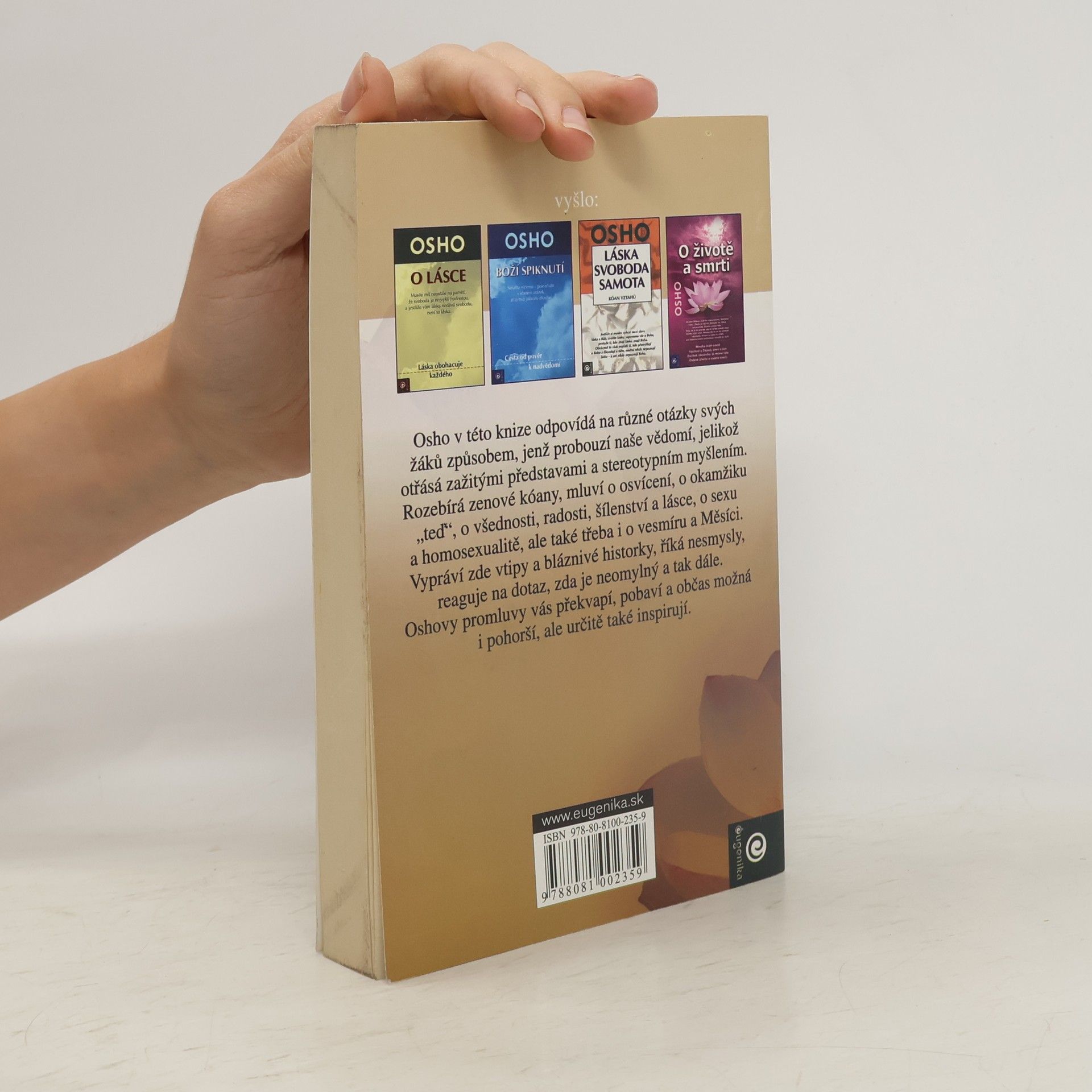 Osho v této knize odpovídá na různé otázky svých žáků způsobem, jenž probouzí naše vědomí, jelikož otřásá zažitými představami a stereotypním myšlením. Rozebírá zenové kóany, mluví o osvícení, o okamžiku "teď", o všednosti, radosti, šílenství a lásce, o sexu a homosexualitě, ale také třeba o vesmíru a Měsíci. Vypráví zde vtipy a bláznivé historky, říká nesmysly, reaguje na dotaz, zda je neomylný a tak dále. Oshovy promluvy vás překvapí, pobaví a možná i pohorší, ale určitě také inspirují.