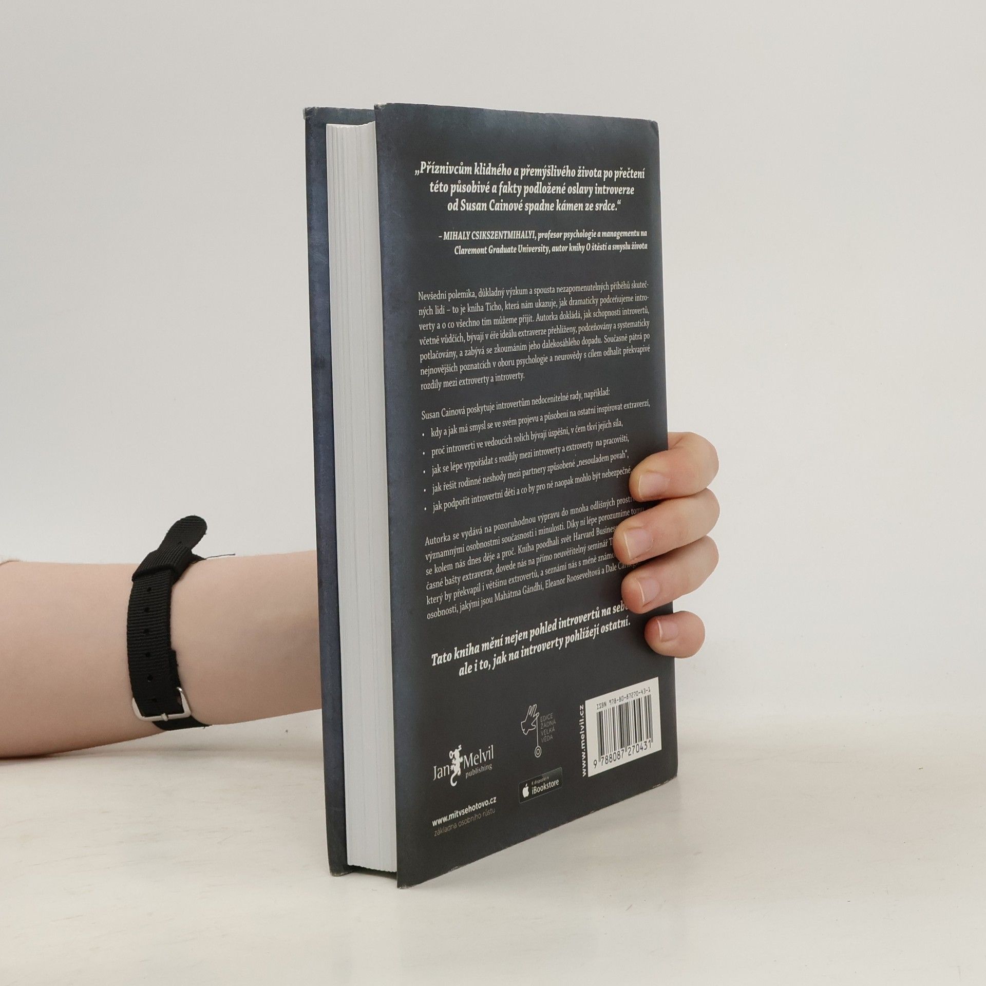Kolik skutečných introvertů znáte? Odpověď vás možná překvapí. V kultuře, která nás od základní školy až po byznys vychovává k týmové práci, je vše nastavené pro úspěch extrovertů. Až díky této knize získali ti tiší svou mluvčí: Susan Cainovou. Její čtivý, důkladný a překvapivý text o tiché síle introvertů se stal velice rychle bestsellerem a autorka celebritou. Je to paradox, když sama o sobě prohlašuje, že je introvertem?
