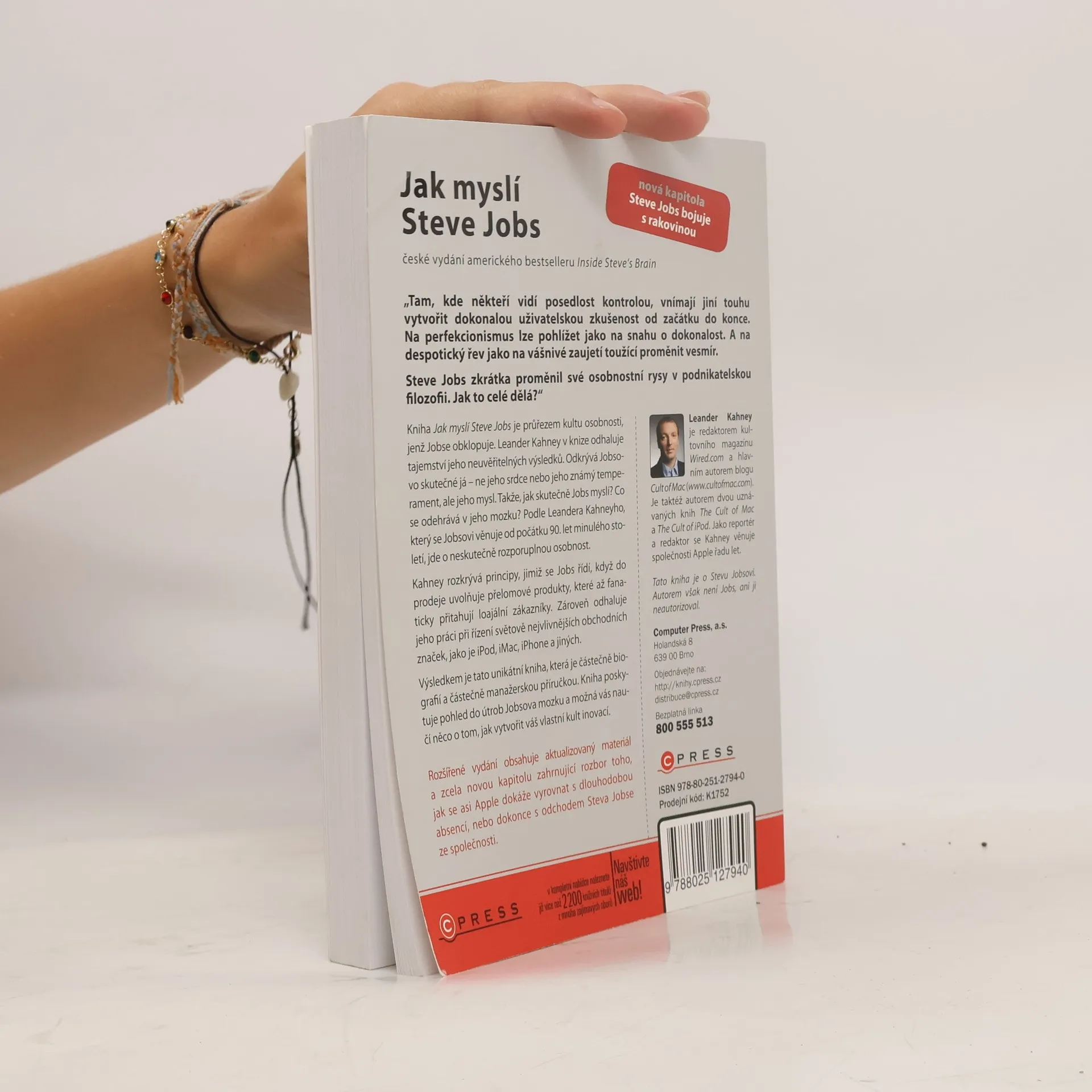 „Tam, kde někteří vidí posedlost kontrolou, vnímají jiní touhu vytvořit dokonalou uživatelskou zkušenost od začátku do konce. Na perfekcionismus lze pohlížet jako na snahu o dokonalost. A na despotický řev jako na vášnivé zaujetí toužící proměnit vesmír. Steve Jobs zkrátka proměnil své osobnostní rysy v podnikatelskou filozofii. Jak to celé dělá?“ Kniha Jak myslí Steve Jobs je průřezem kultu osobnosti, jenž Jobse obklopuje. Leander Kahney v knize odhaluje tajemství jeho neuvěřitelných výsledků.