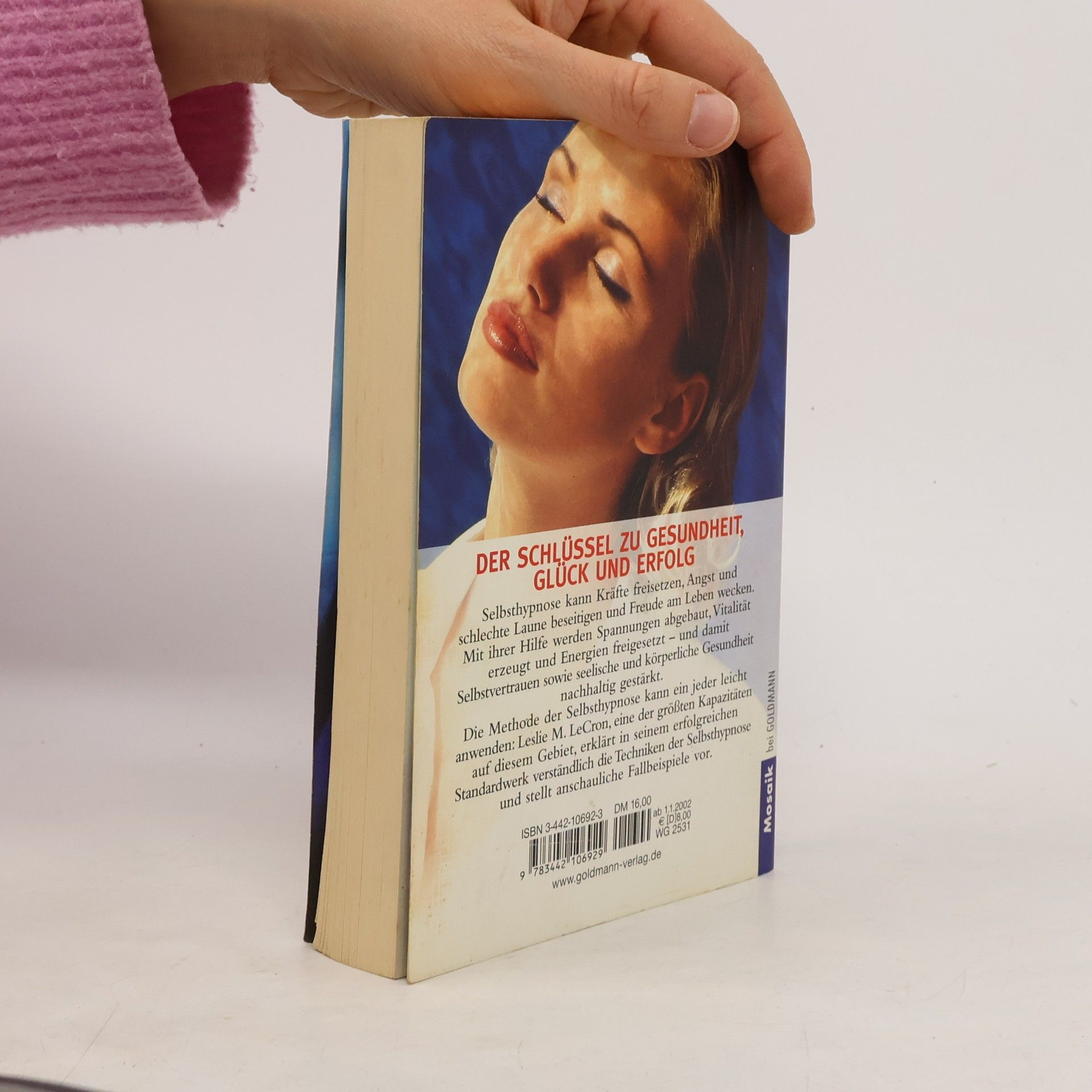 Selbsthypnose erzeugt eine Kraft, die Angst und schlechte Laune beseitigt und statt dessen Freude am Leben hervorruft. Sie ist ein unfehlbares Mittel, Spannungen abzubauen, Vitalität zu erzeugen und Energien freizusetzen. Selbstvertrauen, seelische und körperliche Gesundheit werden nachhaltig gestärkt. Mit anschaulichen Fallbeispielen und genau beschriebenen Techniken ermöglicht es eine der größten Kapazitäten auf diesem Gebiet, Leslie LeCron, jedem Menschen, Selbsthypnose in seinem täglichen Leben leicht und sicher anzuwenden.