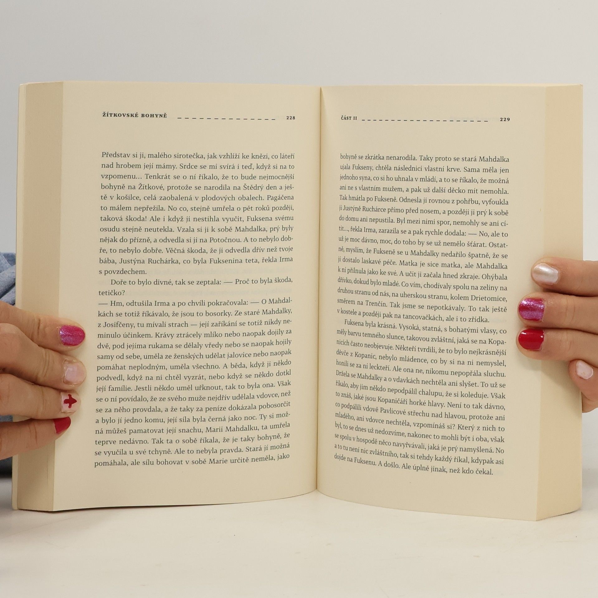 Vysoko v kopcích Bílých Karpat jsou řídce rozeseta přikrčená stavení. Všude je daleko. Říká se, že právě proto si tam některé ženy dokázaly uchovat vědomosti a intuici, kterou jsme ztratili. Předávaly si ji z generace na generaci řadu století. Říkali jim bohyně, protože dokázaly bohovat – prosit Boha o pomoc. A jeho zásahům i trošku dopomoci… Říkalo se o nich, že vidí do budoucnosti. Proč tedy nezachránily tu svou? Dora Idesová je poslední z bohyní. Brání se přijmout zastaralý způsob života a věštit příchozím z odlitého vosku jako její teta Surmena. Vše se ovšem mění, jakmile pochopí, že co se v jejím životě zdálo být nešťastnou shodou okolností, bylo pečlivě promyšleným plánem. Její umístění v internátě, Jakoubkova ústavní péče, hospitalizace v psychiatrické léčebně v Kroměříži… Na konci 90. let na ni v pardubickém archivu ministerstva vnitra čeká operativní svazek vedený StB na vnitřního nepřítele – její tetu Surmenu. Dora nevěřícně rozplétá neznámé osudy své rodiny i dalších bohyní…