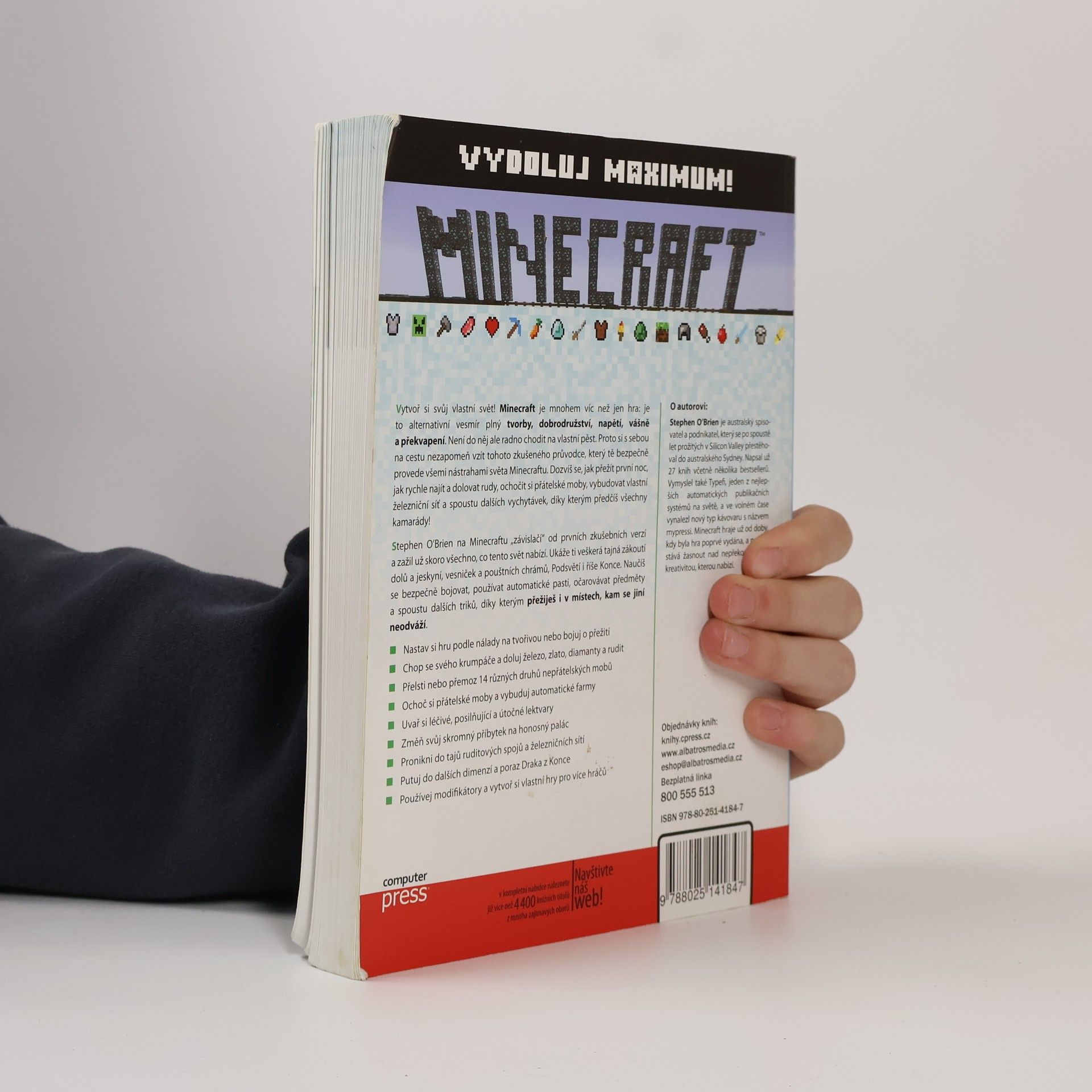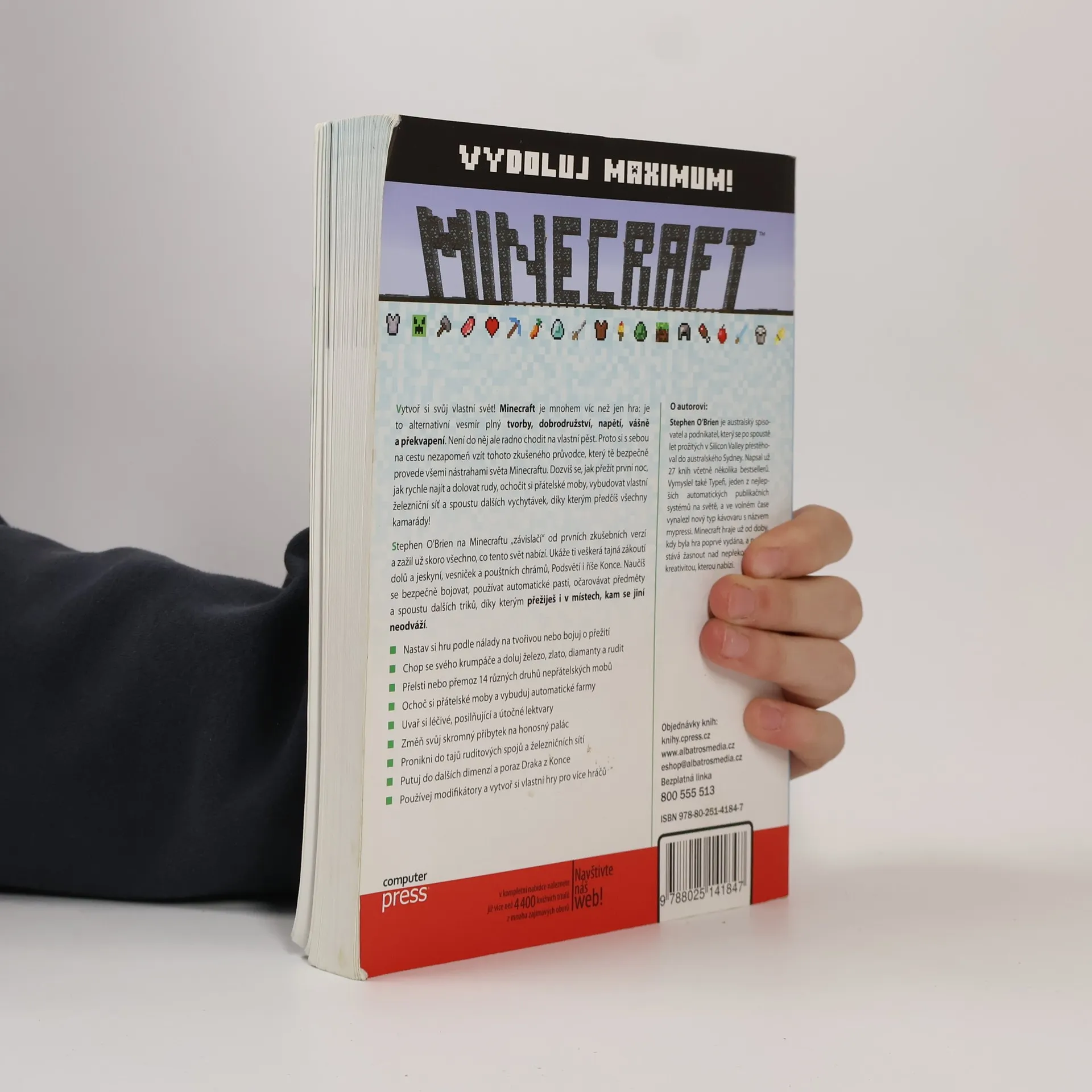 Vytvoř si svůj vlastní svět! Minecraft je mnohem víc než jen hra: je to alternativní vesmír plný tvorby, dobrodružství, napětí a překvapení. Není do něj ale radno vstupovat na vlastní pěst, takže si s sebou nezapomeň přibalit tohoto průvodce. Dozvíš se jak přežít první noc, rychle najít rudy, ochočit přátelské moby, vybudovat železniční síť a spoustu dalších vychytávek!