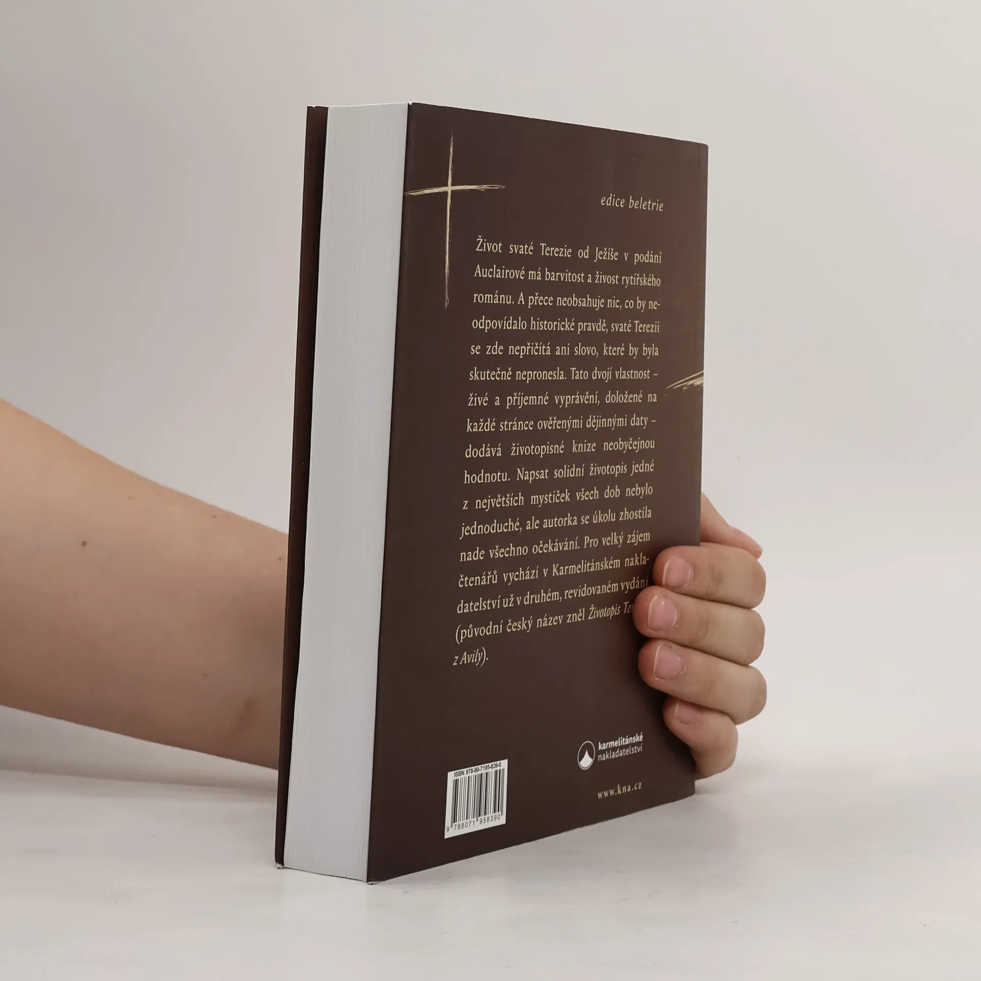 Život svaté Terezie od Ježíše v podání Auclairové má barvitost a živost rytířského románu. A přece neobsahuje nic, co by neodpovídalo historické pravdě, svaté Terezii se zde nepřičítá ani slovo, které by byla skutečně nepronesla. Tato dvojí vlastnost – živé a příjemné vyprávění, doložené na každé stránce ověřenými dějinnými daty – dodává životopisné knize neobyčejnou hodnotu. Napsat solidní životopis jedné z největších mystiček všech dob nebylo jednoduché, ale autorka se úkolu zhostila nade všechno očekávání. Pro velký zájem čtenářů vychází v Karmelitánském nakladatelství už v druhém, revidovaném vydání (původní český název zněl Životopis Terezie z Avily).