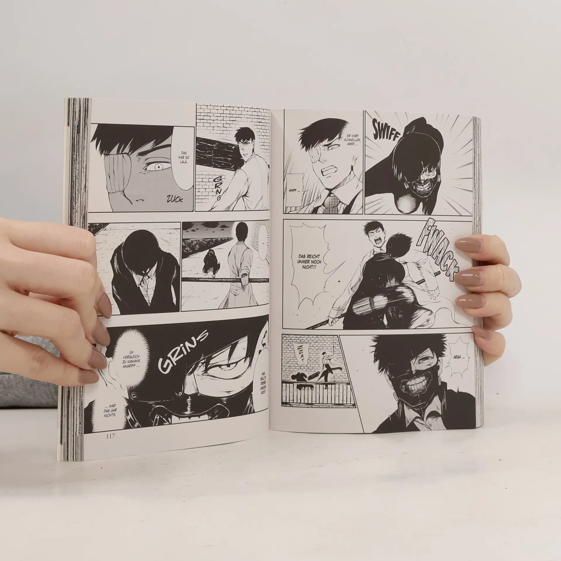 Die sogenannten Tauben, erbarmungslose Ghul-Jäger, haben die Mutter der kleinen Hinami getötet. Jetzt sind sie dem Mädchen selbst auf den Fersen. Für Ken, der unfreiwillig in diese Ereignisse hineingezogen wird, verschwimmen die Grenzen zwischen Gut und Böse immer weiter. Wer sind die wahren Monster? Und was bedeutet Menschlichkeit?