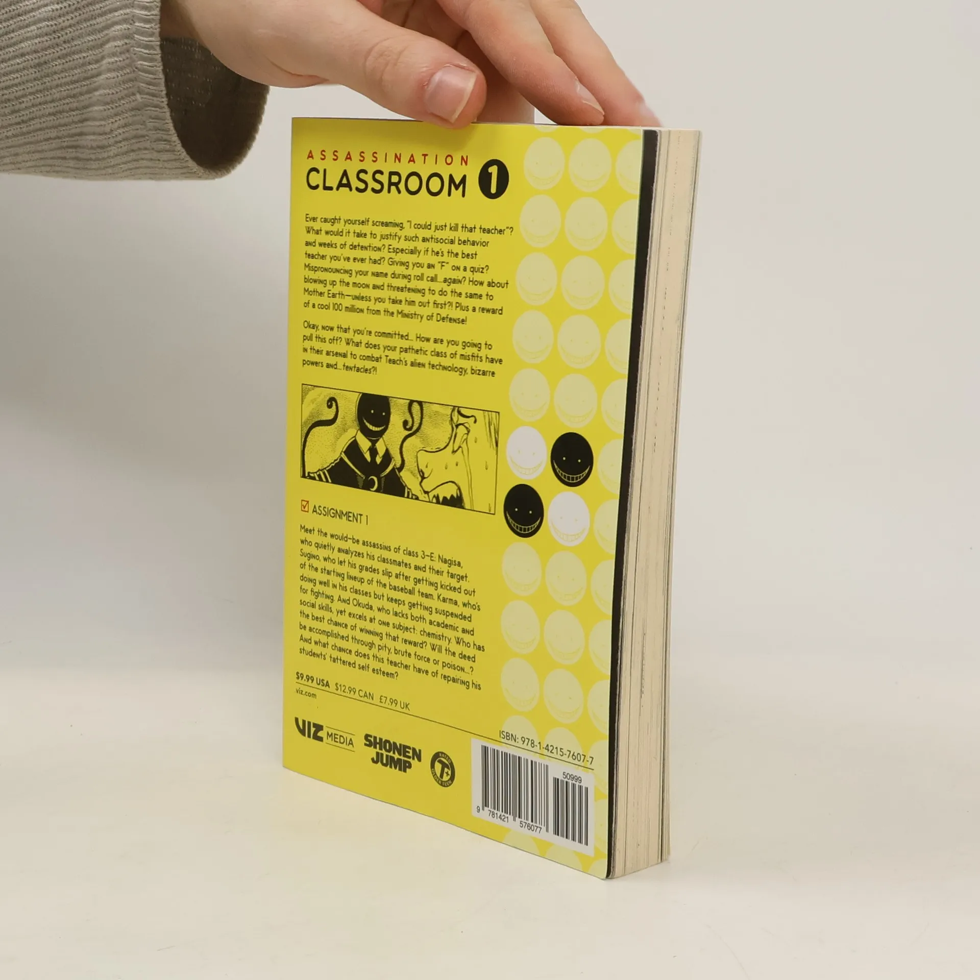 The students in Class 3-E of Kunugigaoka Junior High have a new teacher: an alien octopus with bizarre powers and unlimited strength, who’s just destroyed the moon and is threatening to destroy the earth—unless they can kill him first! Meet the would-be assassins of class 3-E: Sugino, who let his grades slip and got kicked off the baseball team. Karma, who's doing well in his classes but keeps getting suspended for fighting. And Okuda, who lacks both academic and social skills, yet excels at one subject: chemistry. Who has the best chance of winning that reward? Will the deed be accomplished through pity, brute force or poison...? And what chance does their teacher have of repairing his students' tattered self-esteem?