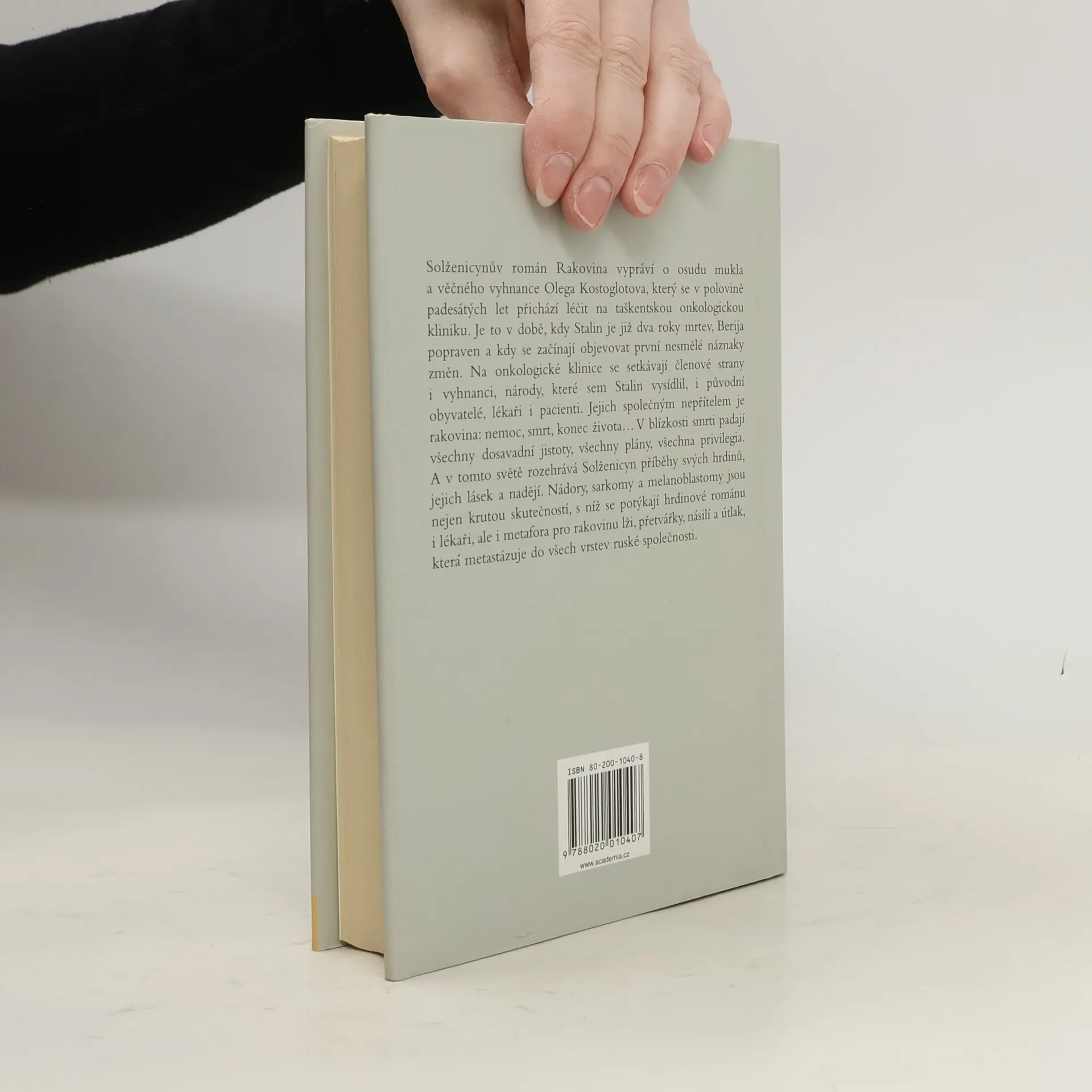 Román sleduje osud člověka, který na vlastní kůži zažil hrůzy stalinských lágrů a vyhnanství, onemocněl a přichází se léčit na onkologickou kliniku. Zde se protíná řada lidských osudů v široké plejádě pacientů - prominentních komunistů, vyhnanců, původních obyvatel i příslušníků vysídlených národů. Společným nepřítelem všech, mladých, starých, lékařů i pacientů je v této nemocnici smrtící nádor. Rakovina však jakoby prostupovala celou společností, která se jen zvolna zotavuje z období kultu osobnosti, nejstrašnější etapy moderních ruských dějin.