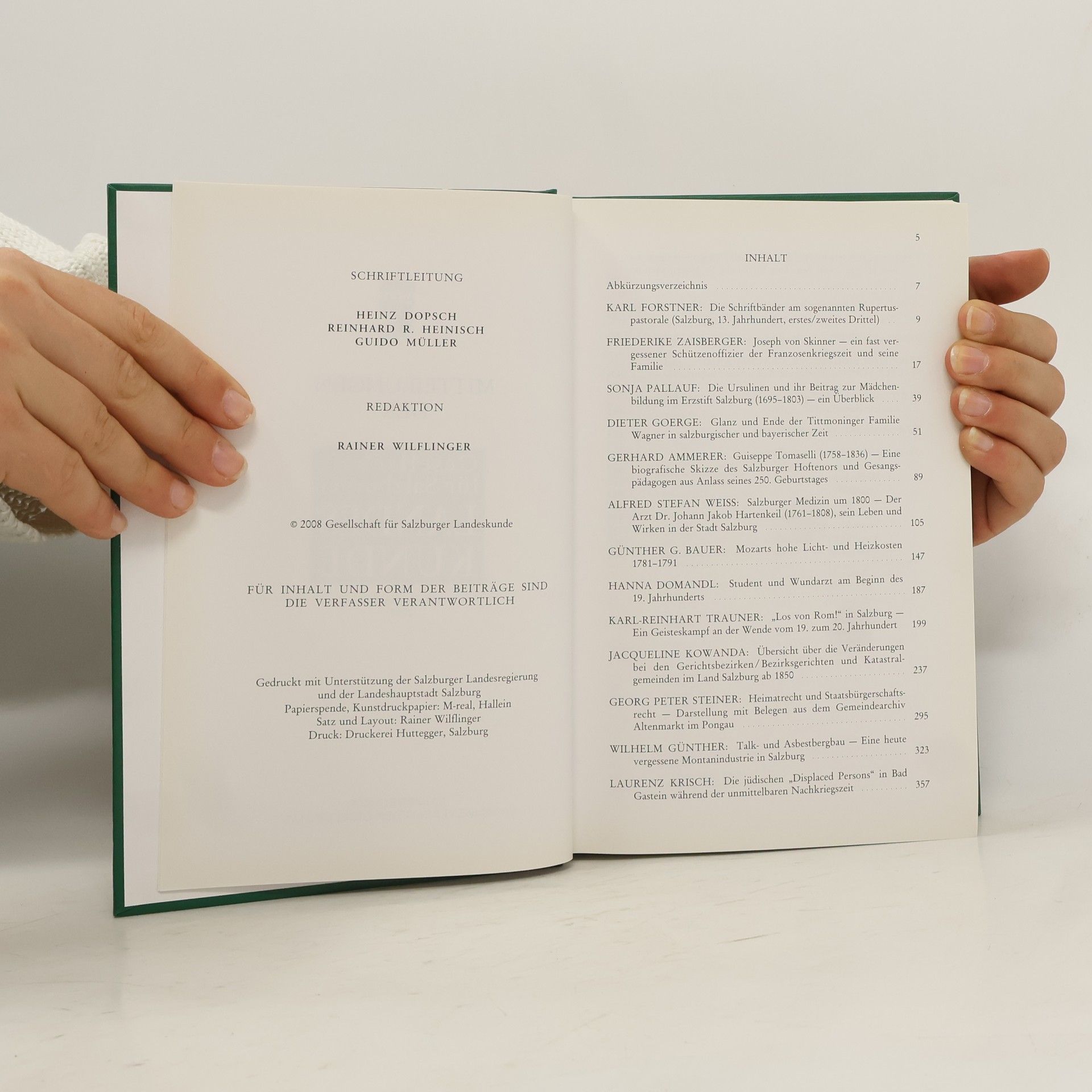 Mitteilungen der Gesellschaft für Salzburger Landeskunde 2008, Collectif d'auteurs