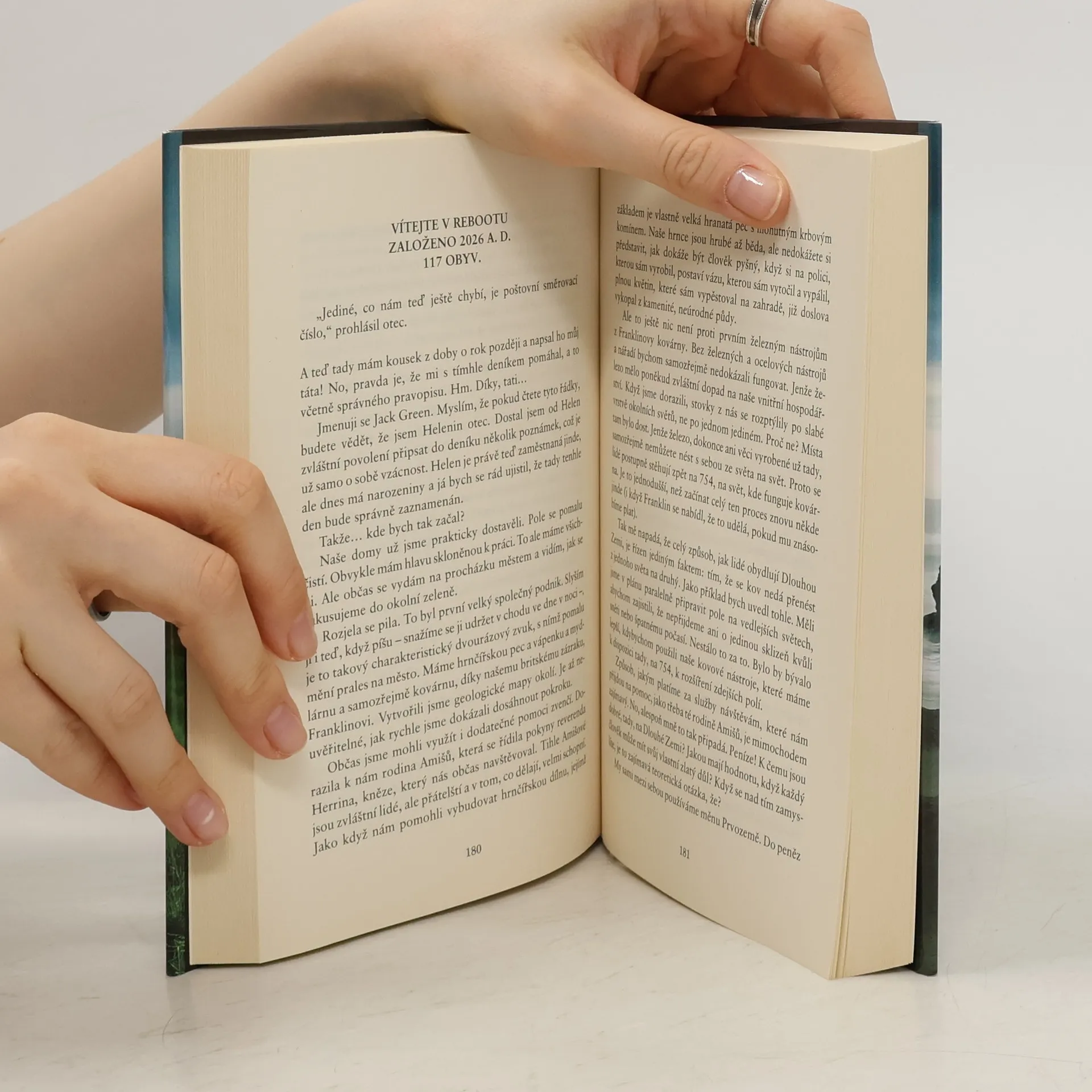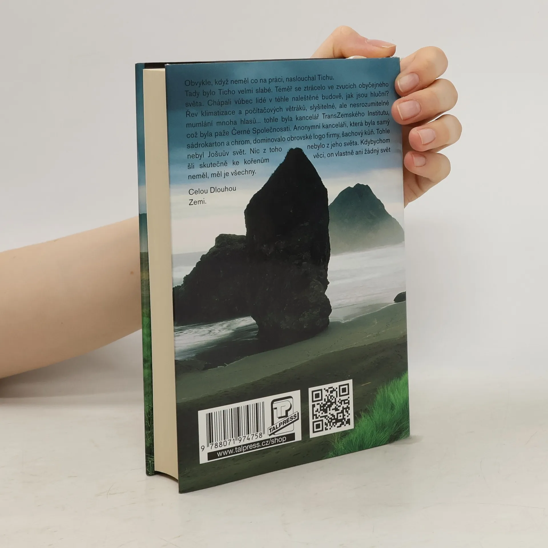 Obvykle, když neměl co na práci, naslouchal Tichu. Tady bylo Ticho velmi slabé. Téměř se ztrácelo ve zvucích obyčejného světa. Chápali vůbec lidé v téhle naleštěné budově, jak jsou hluční? Řev klimatizace a počítačových větráků, slyšitelné, ale nesrozumitelné mumlání mnoha hlasů... tohle byla kancelář TransZemského Institutu, což byla paže Černé Společnosti. Anonymní kanceláři, která byla samý sádrokarton a chrom, dominovalo obrovské logo firmy, šachový kůň. Tohle nebyl Jošuův svět. Nic z toho nebylo z jeho světa. Kdybychom šli skutečně ke kořenům věci, on vlastně ani žádný svět neměl, měl je všechny. Celou Dlouhou Zemi.